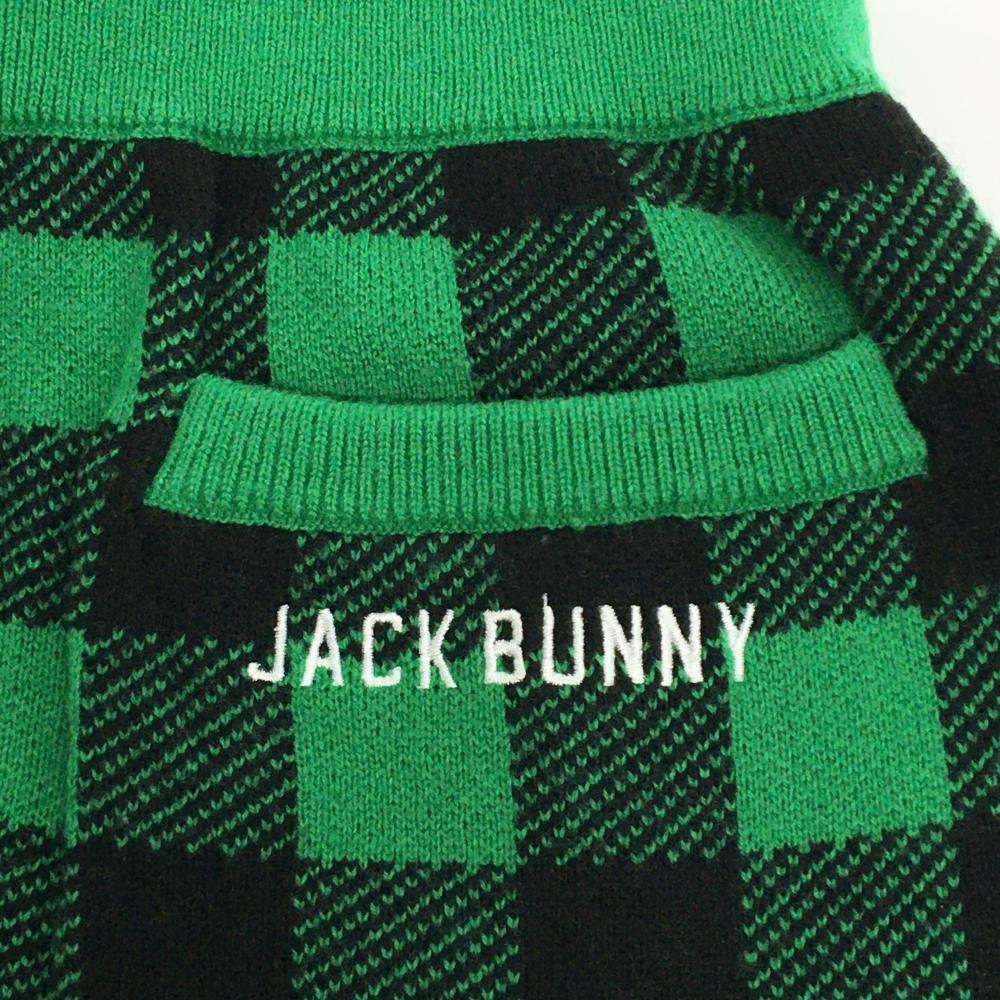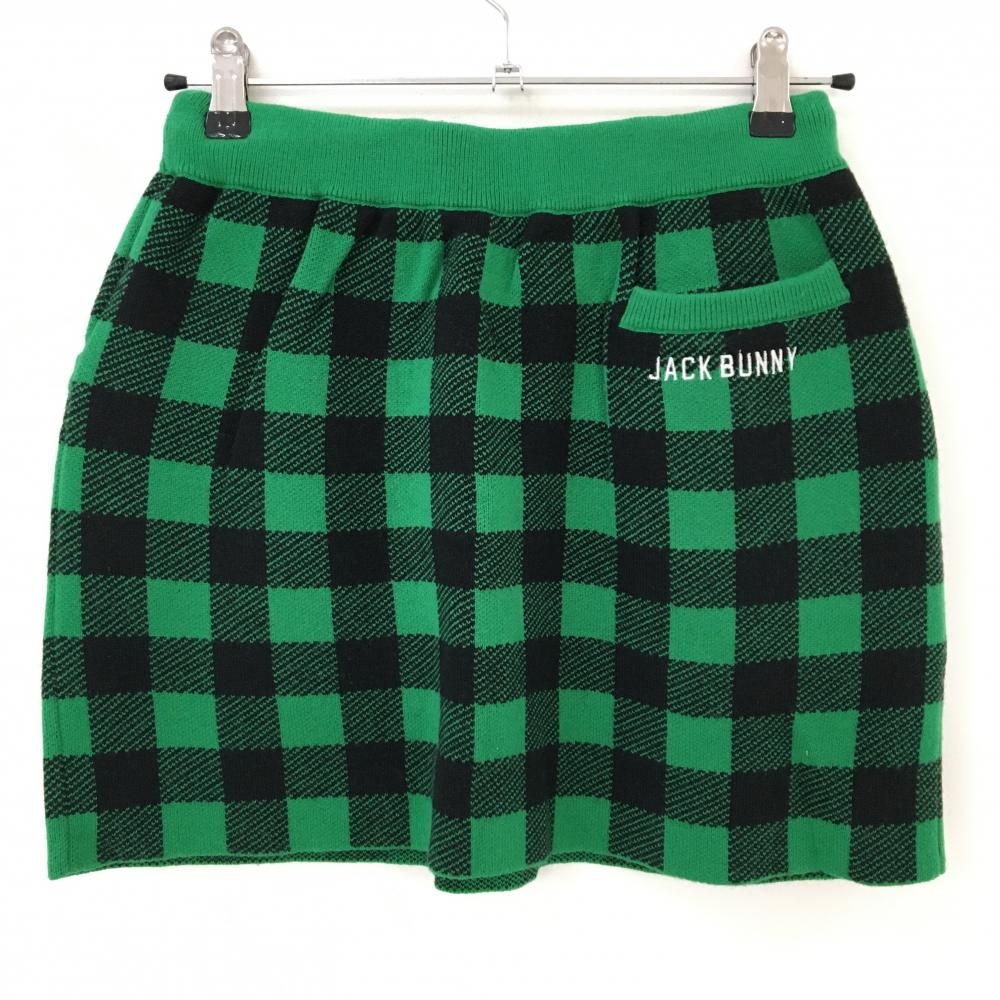 【超美品】ジャックバニー ニットスカート グリーン×黒 チェック柄 ウエストゴム 調節紐 レディース 1(M) ゴルフウェア Jack Bunny