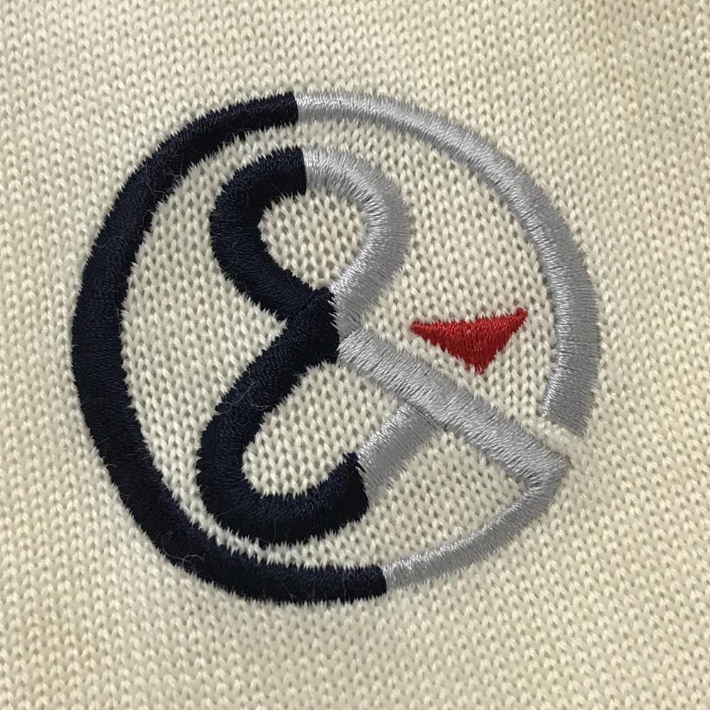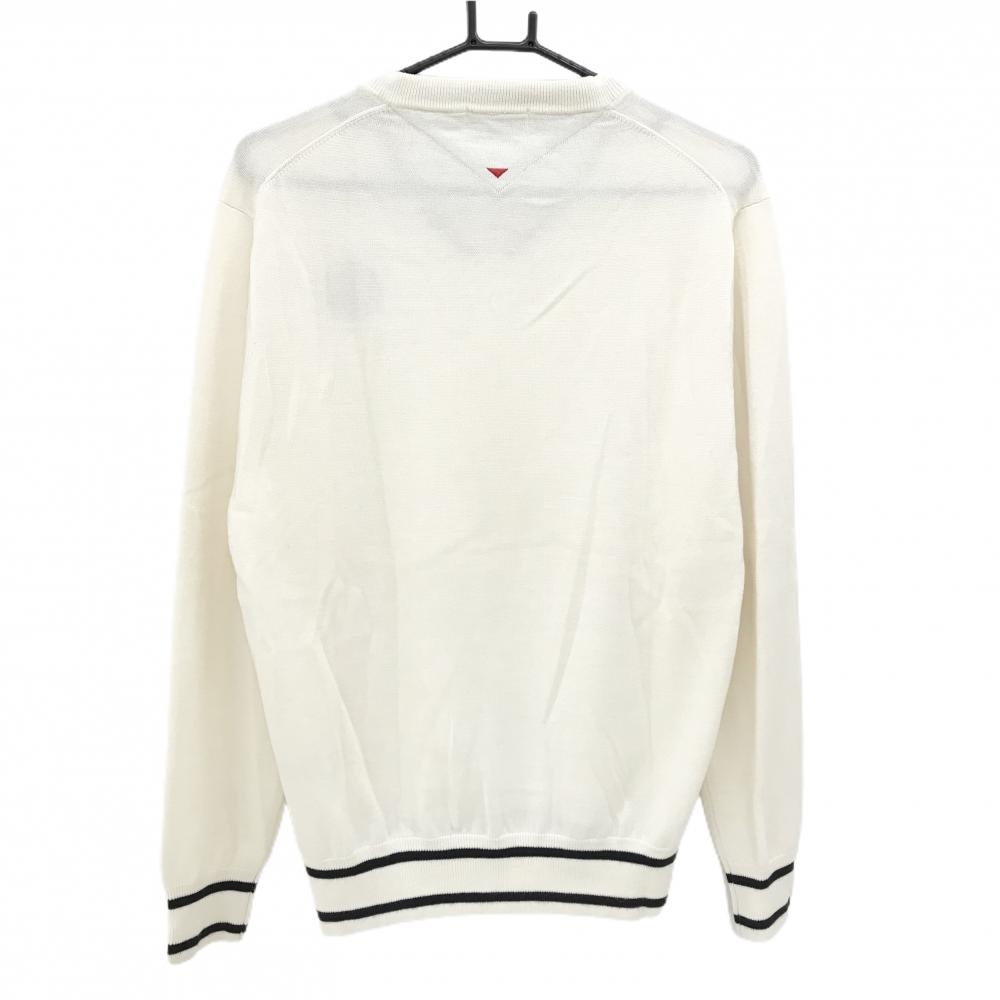 【美品】アンパスィ セーター アイボリー×黒 Vネック ロゴ刺しゅう ウール混 ニット メンズ L ゴルフウェア and per se
