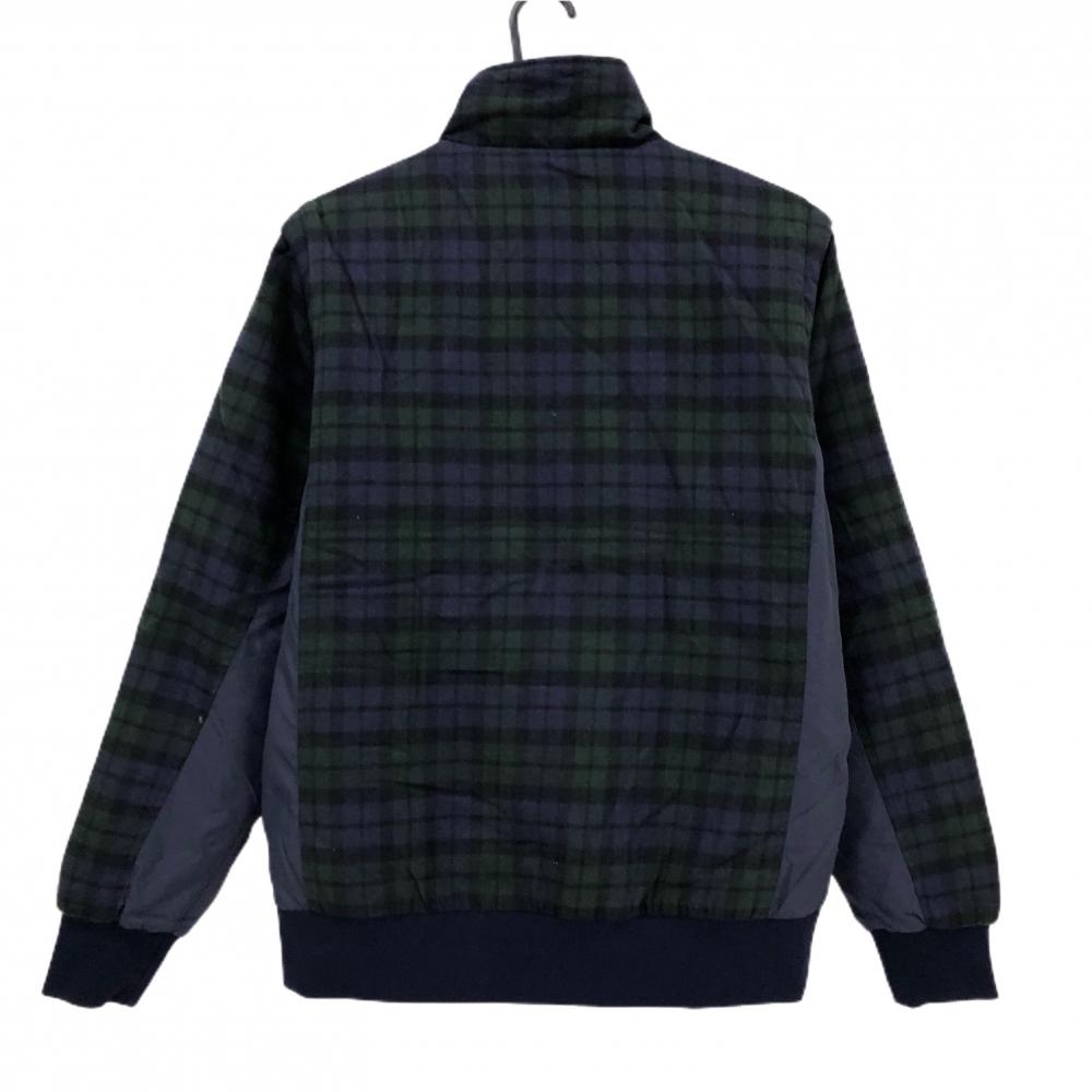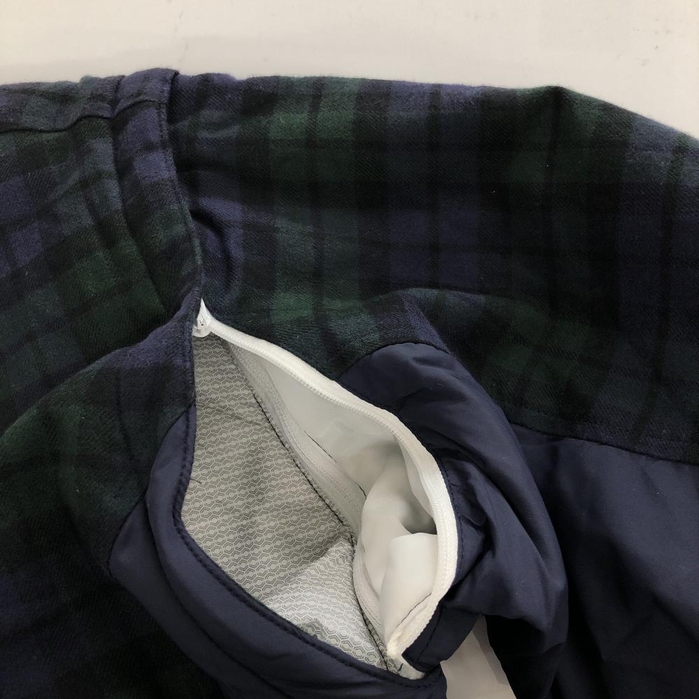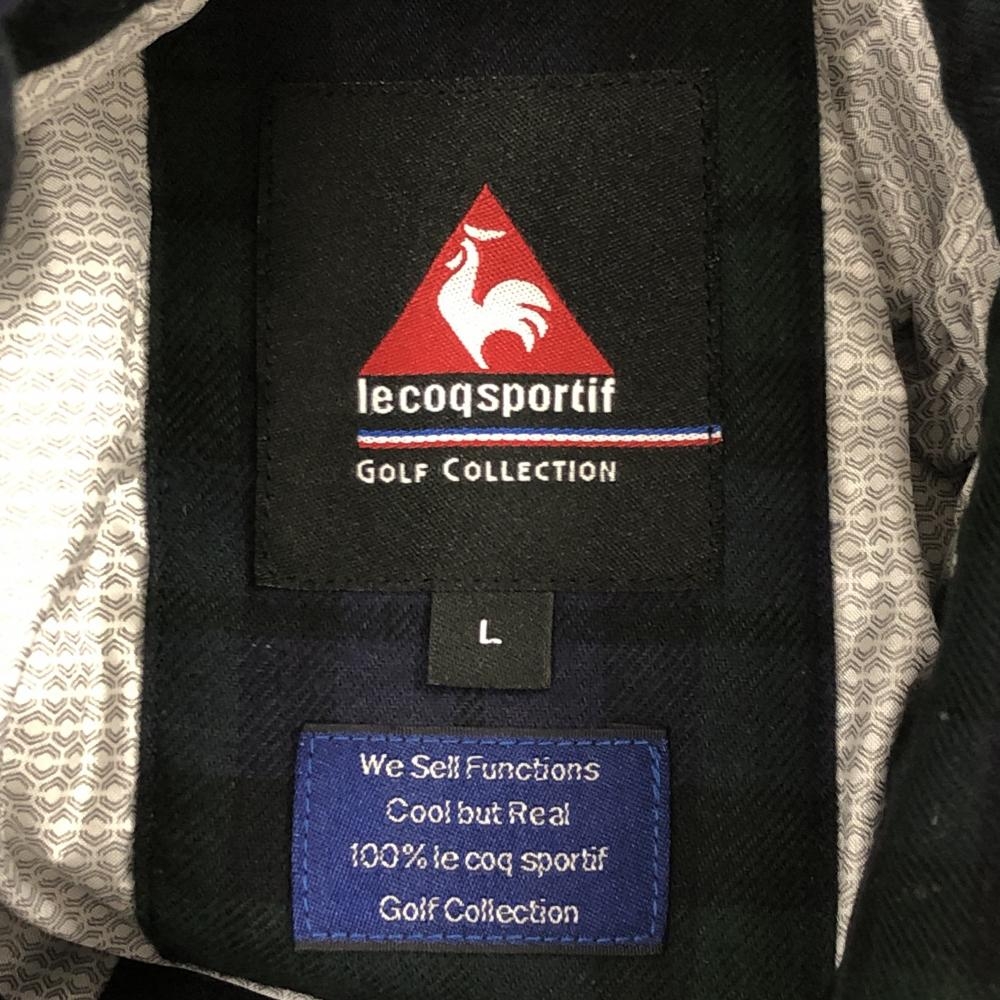 【美品】ルコックゴルフ 2WAY中綿ジャケット グリーン×ネイビー チェック 表微起毛 袖着脱可 メンズ L ゴルフウェア le coq sportif