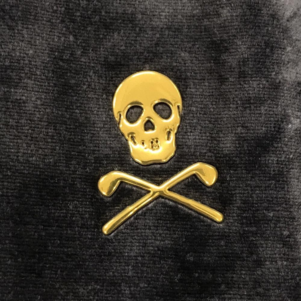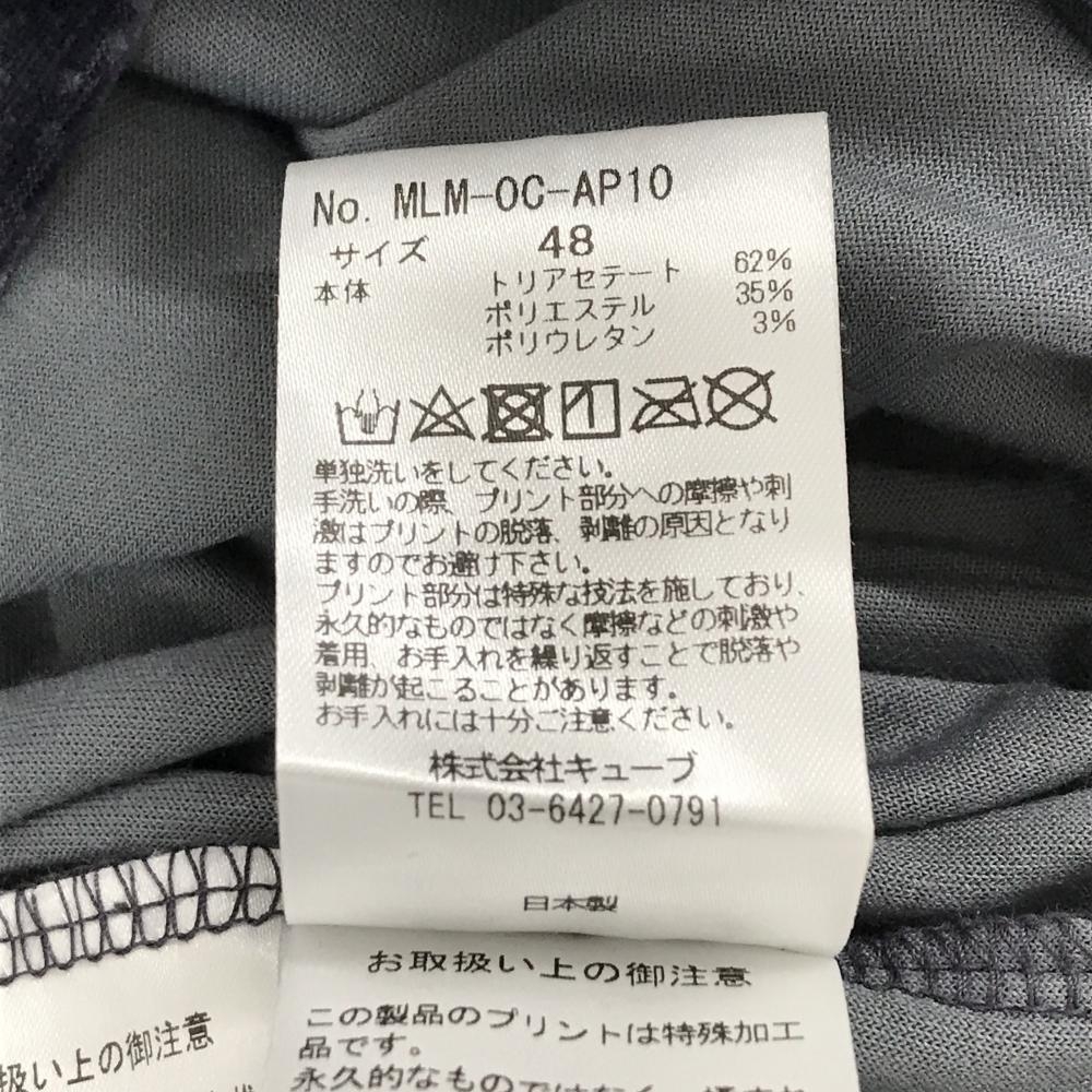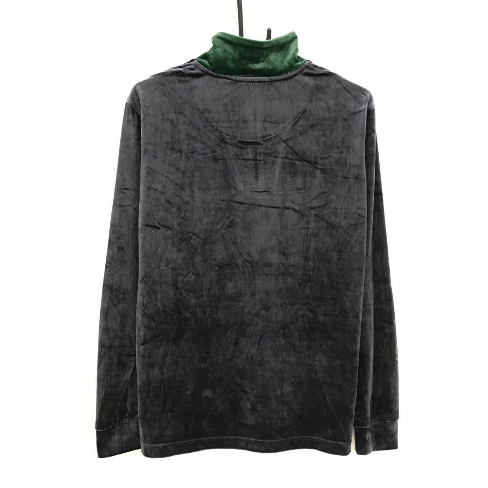 【美品】マークアンドロナ 長袖ハイネックシャツ グレー×グリーン ベロア調 ハーフジップ メンズ 48(L) ゴルフウェア MARK&LONA