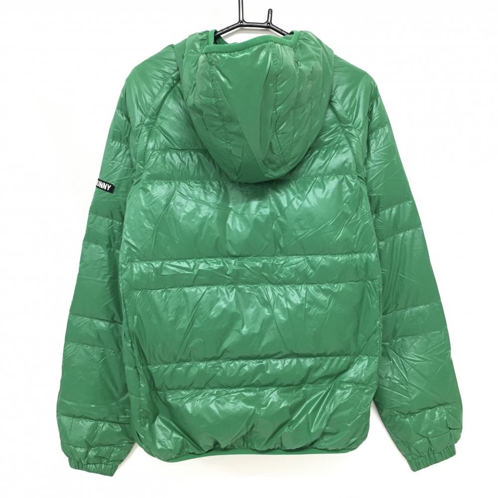 【美品】ジャックバニー 2WAYダウンジャケット グリーン フード付 袖着脱可 メンズ 6(XL) ゴルフウェア Jack Bunny
