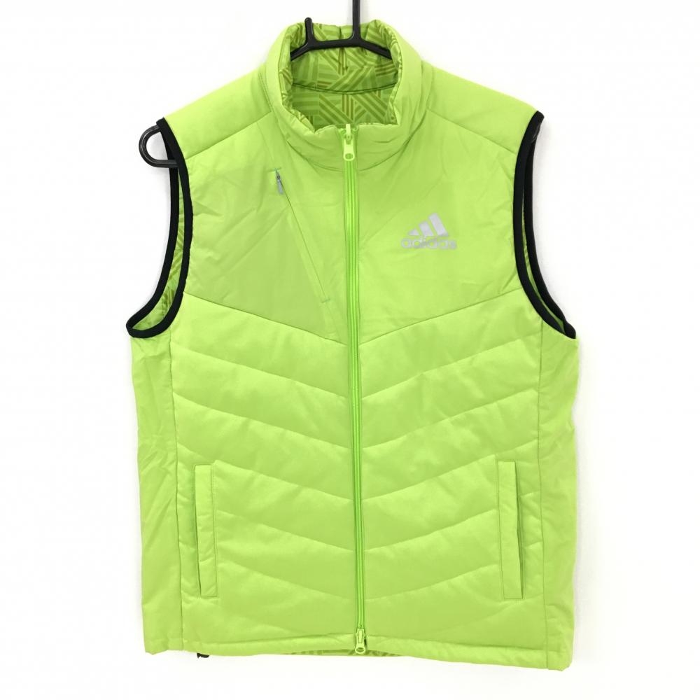 【美品】アディダス 中綿リバーシブルベスト ライトグリーン 総柄 メンズ M/M ゴルフウェア adidas