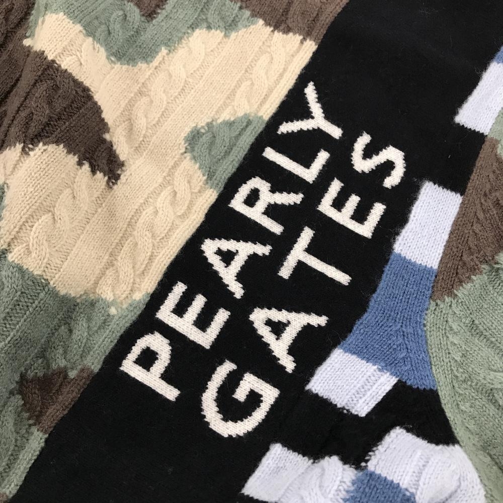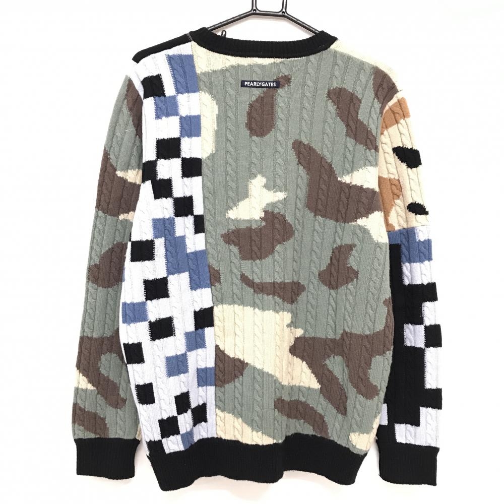 【超美品】パーリーゲイツ セーター カーキ×ベージュ 一部カモフラ 総柄 メンズ 5(L) ゴルフウェア 2023年モデル PEARLY GATES