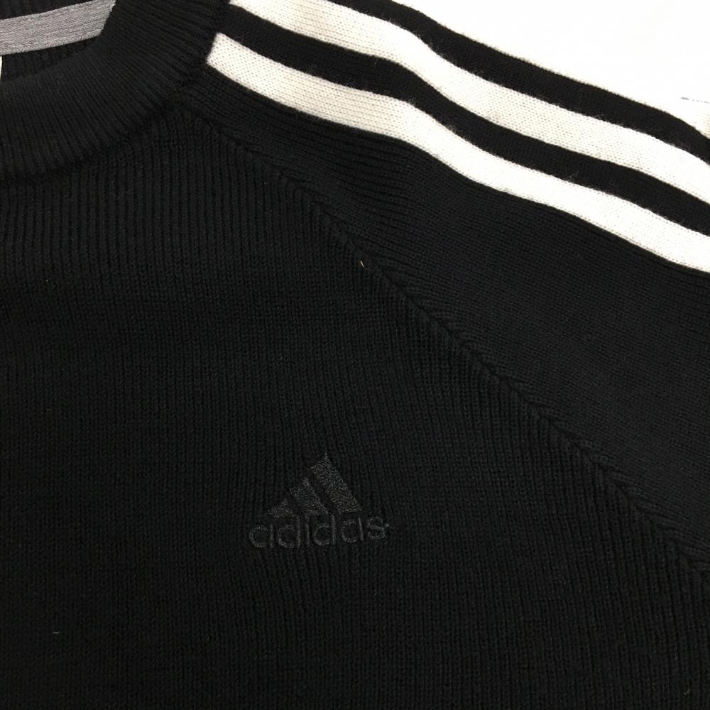 アディダス セーター 黒×白 袖3ライン ニット レディース OT(XL) ゴルフウェア adidas