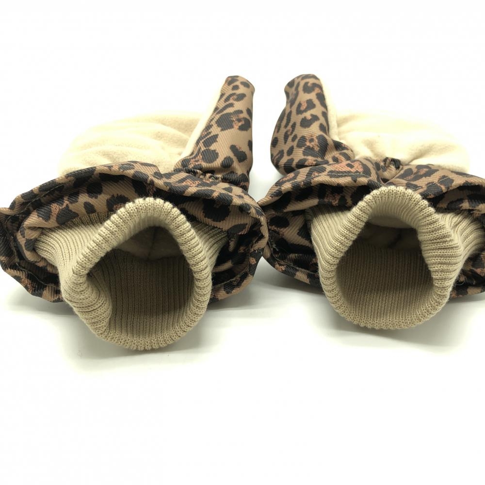 【超美品】パーリーゲイツ 手袋 ベージュ×黒 レオパード ヒョウ柄 裏起毛 メンズ ゴルフウェア PEARLY GATES