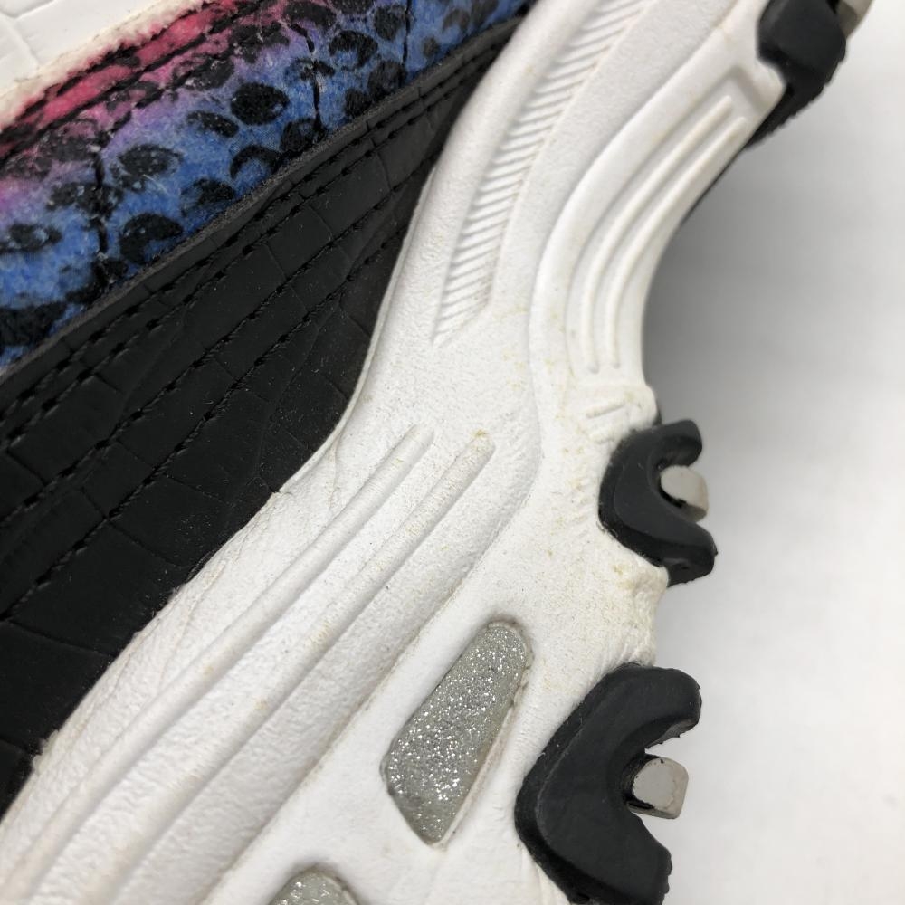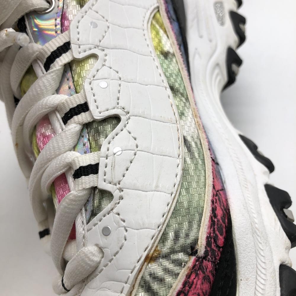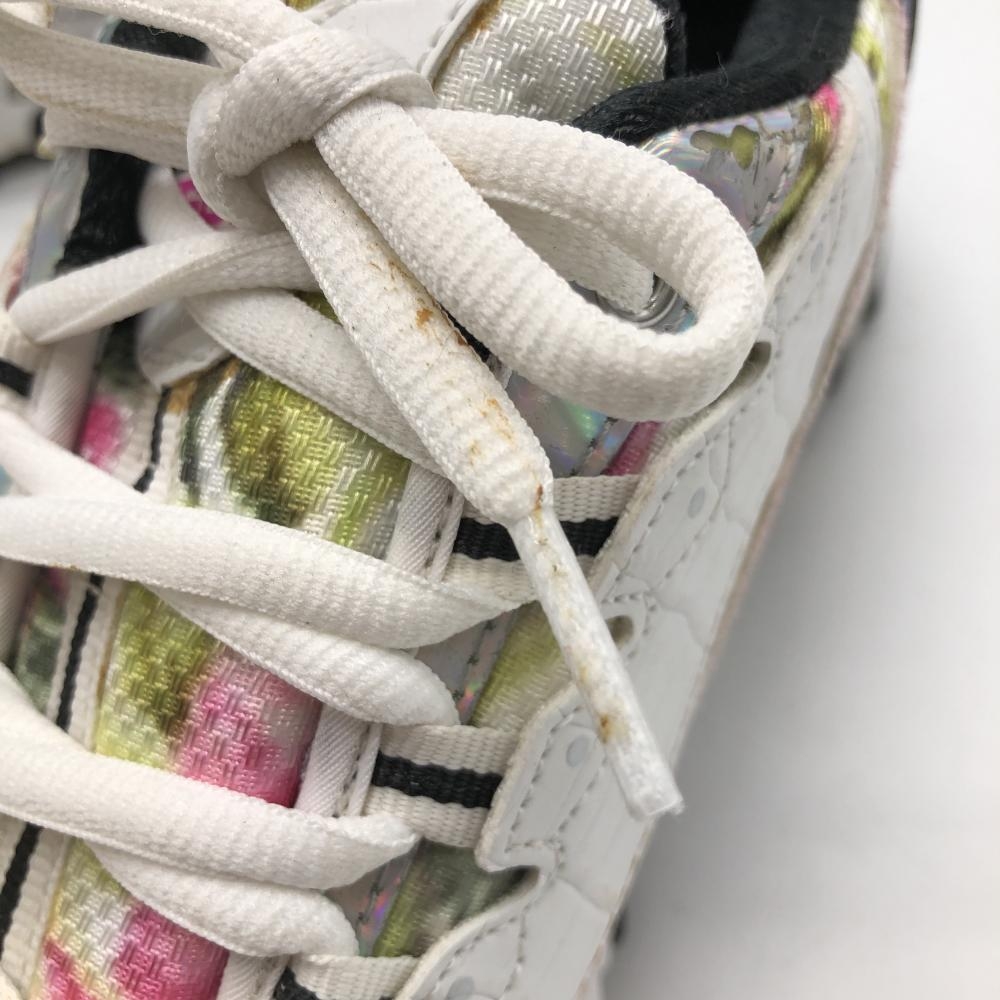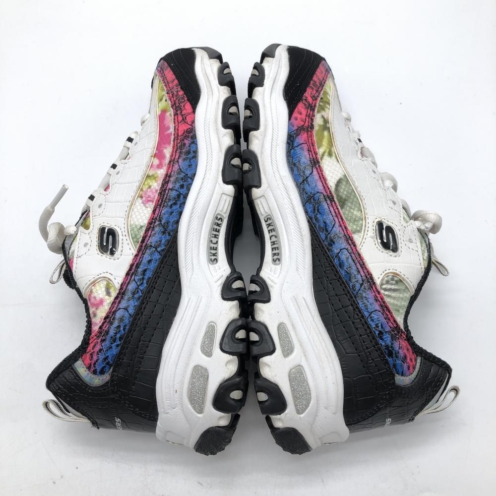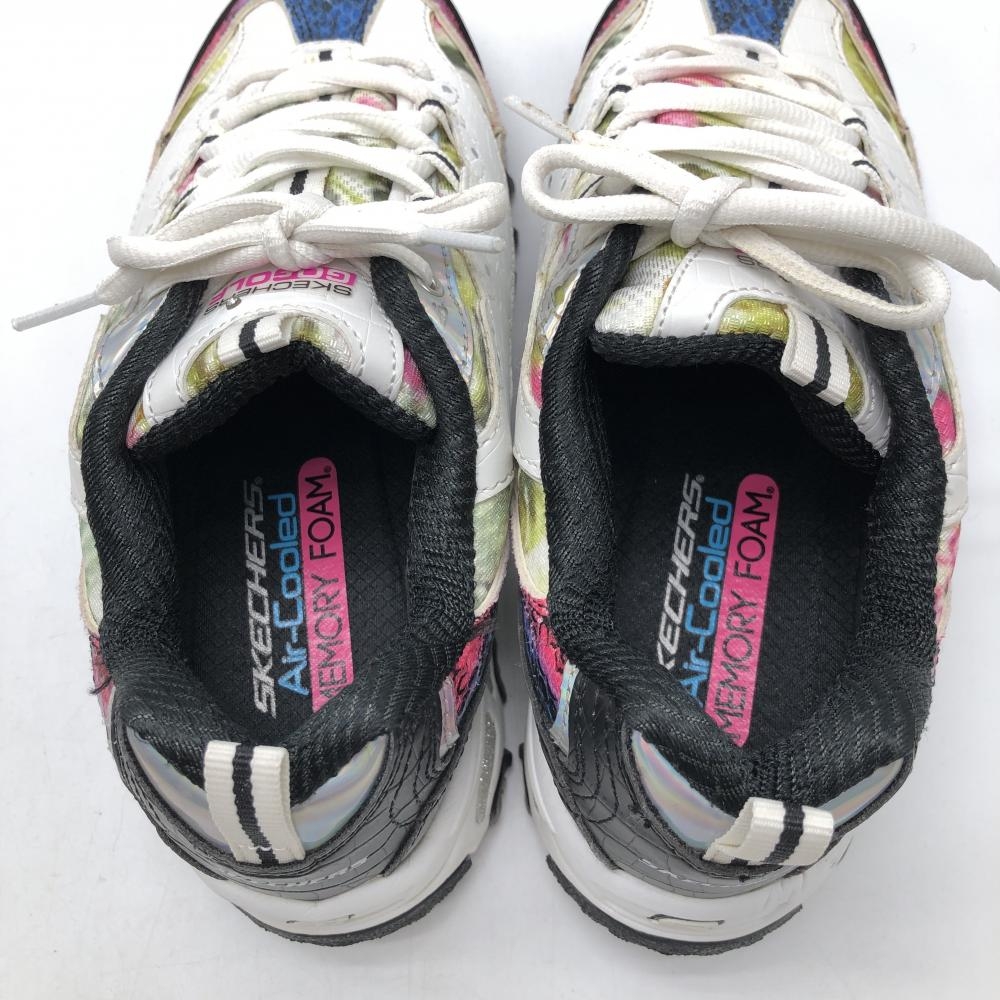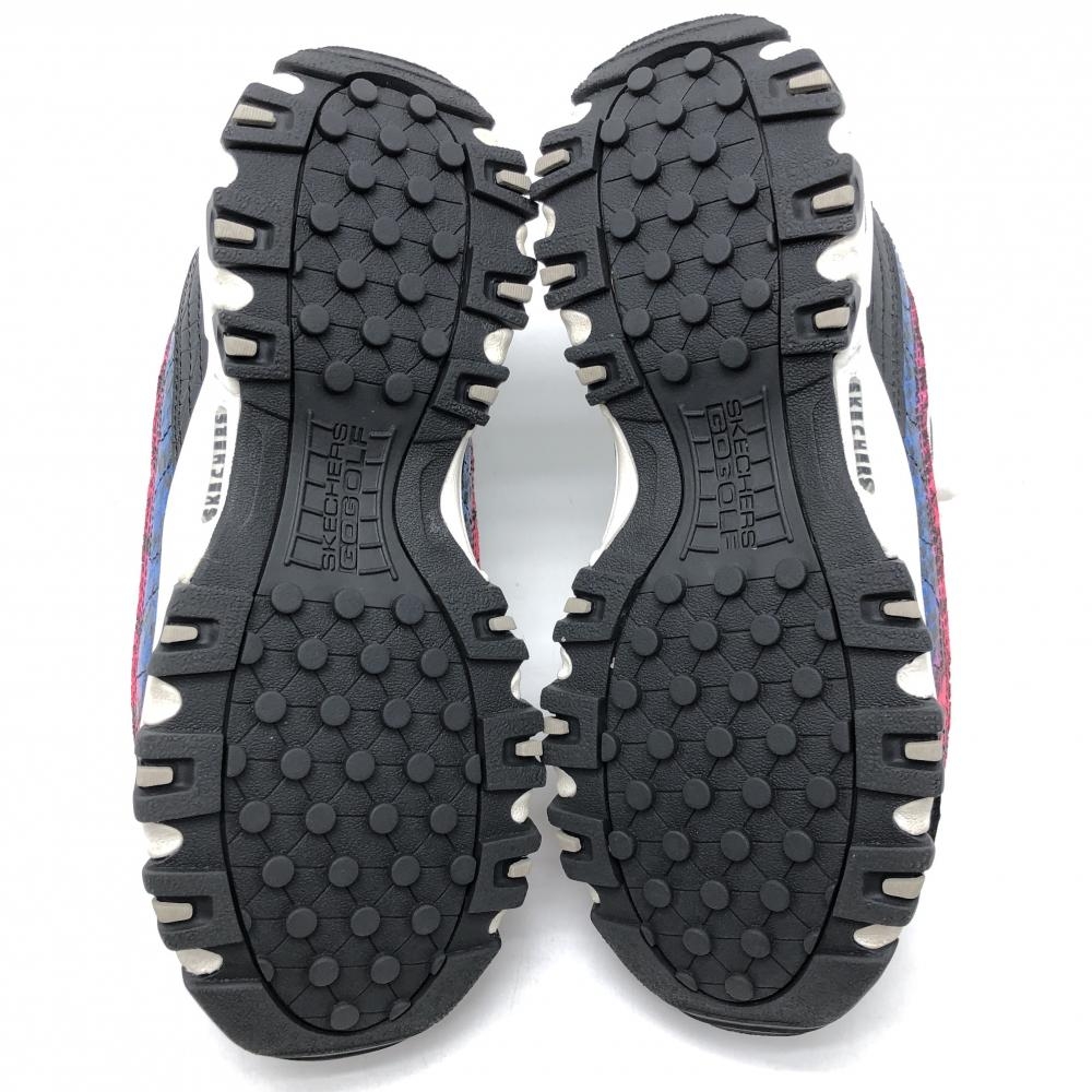 【美品】スケッチャーズ ゴルフシューズ 白×グリーン SN123998 花柄風 スパイクレス レディース 24.0 ゴルフウェア SKECHERS