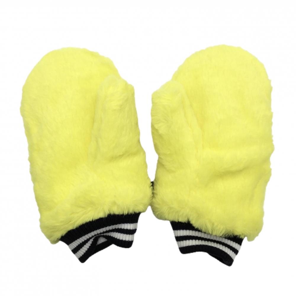 【超美品】パーリーゲイツ 手袋 イエロー×黒 フェイクファー 裏起毛 ミトングローブ レディース ゴルフウェア PEARLY GATES