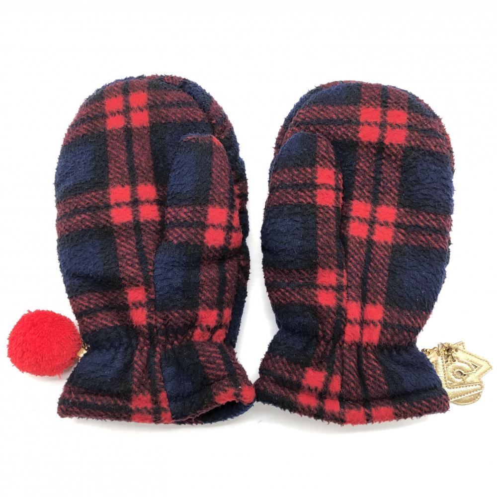 キャロウェイ 手袋 レッド×ネイビー チェック フリース地 ミトン レディース ゴルフウェア Callaway