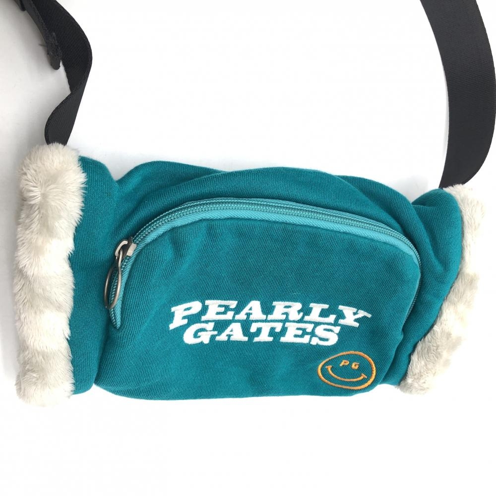 【超美品】パーリーゲイツ ハンドウォーマー グリーン ニコちゃん スマイル 裏ボア ゴルフウェア PEARLY GATES