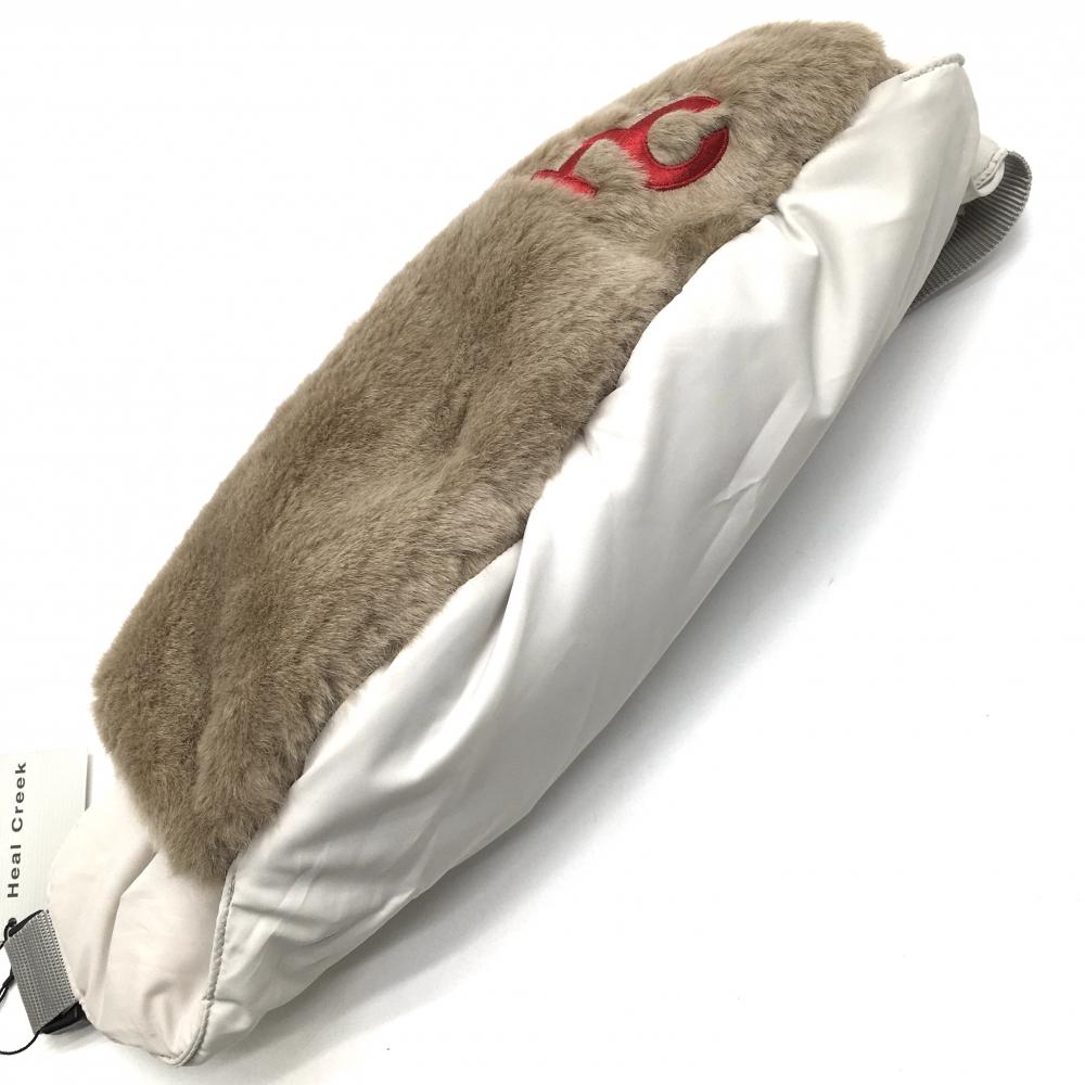 【新品】ヒールクリーク ハンドウォーマー ライトベージュ×ブラウン 一部フェイクファー ポケット付 00 ゴルフウェア Heal Creek