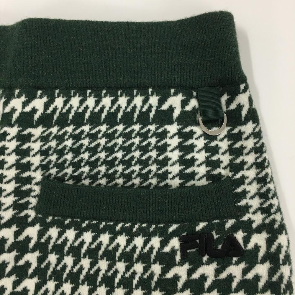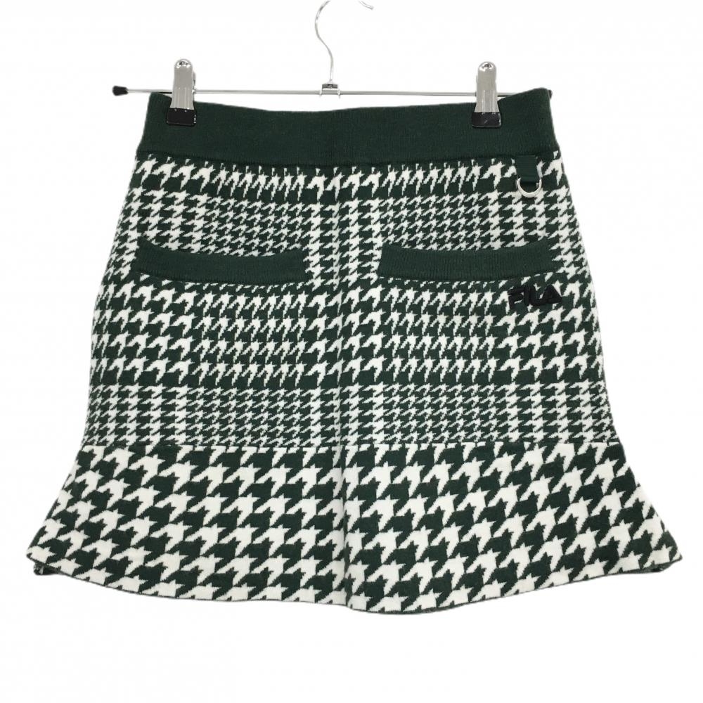 【超美品】フィラゴルフ ニットスカート グリーン×白 千鳥格子 ウエストゴム レディース S ゴルフウェア FILA GOLF
