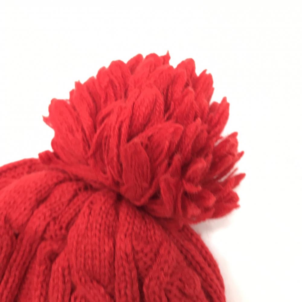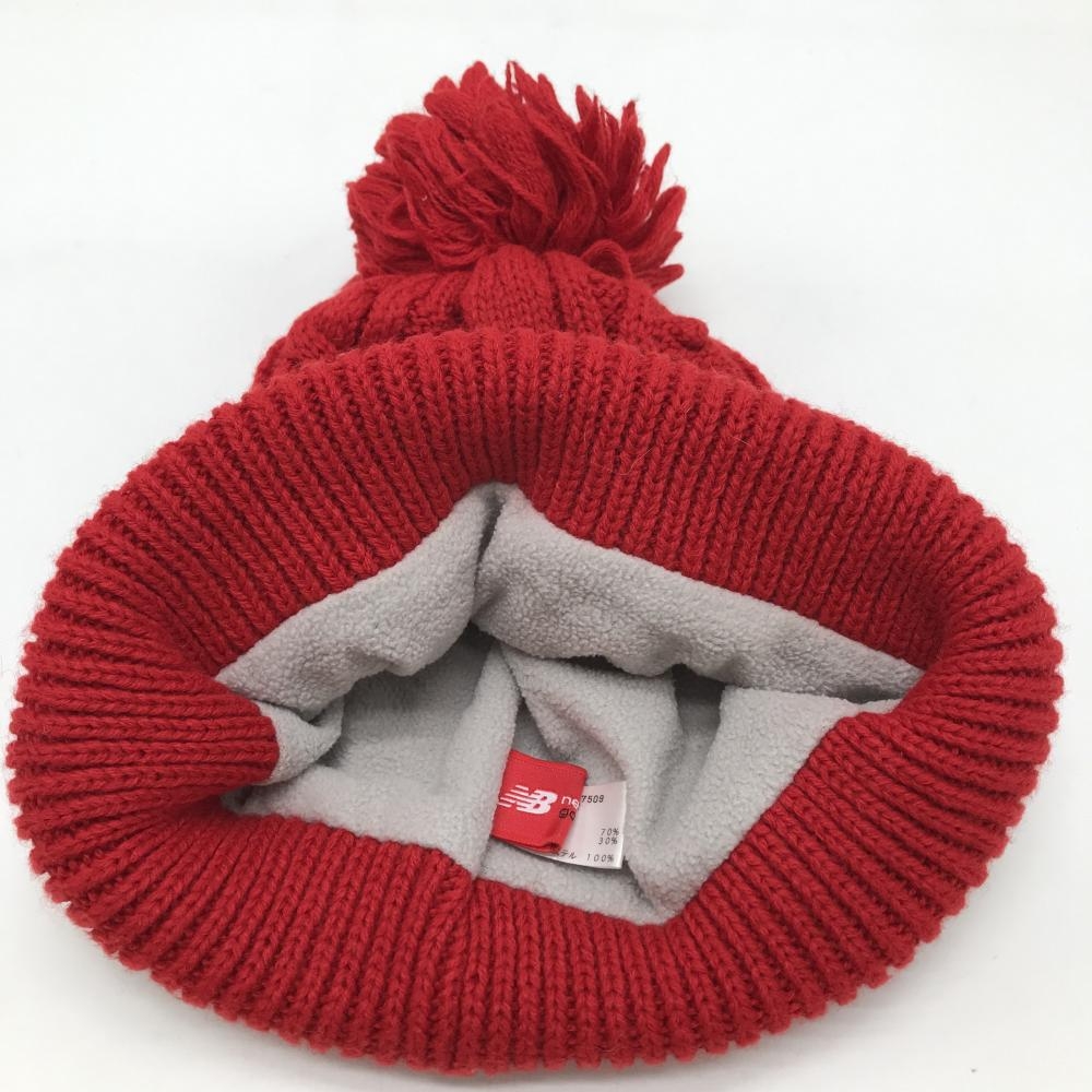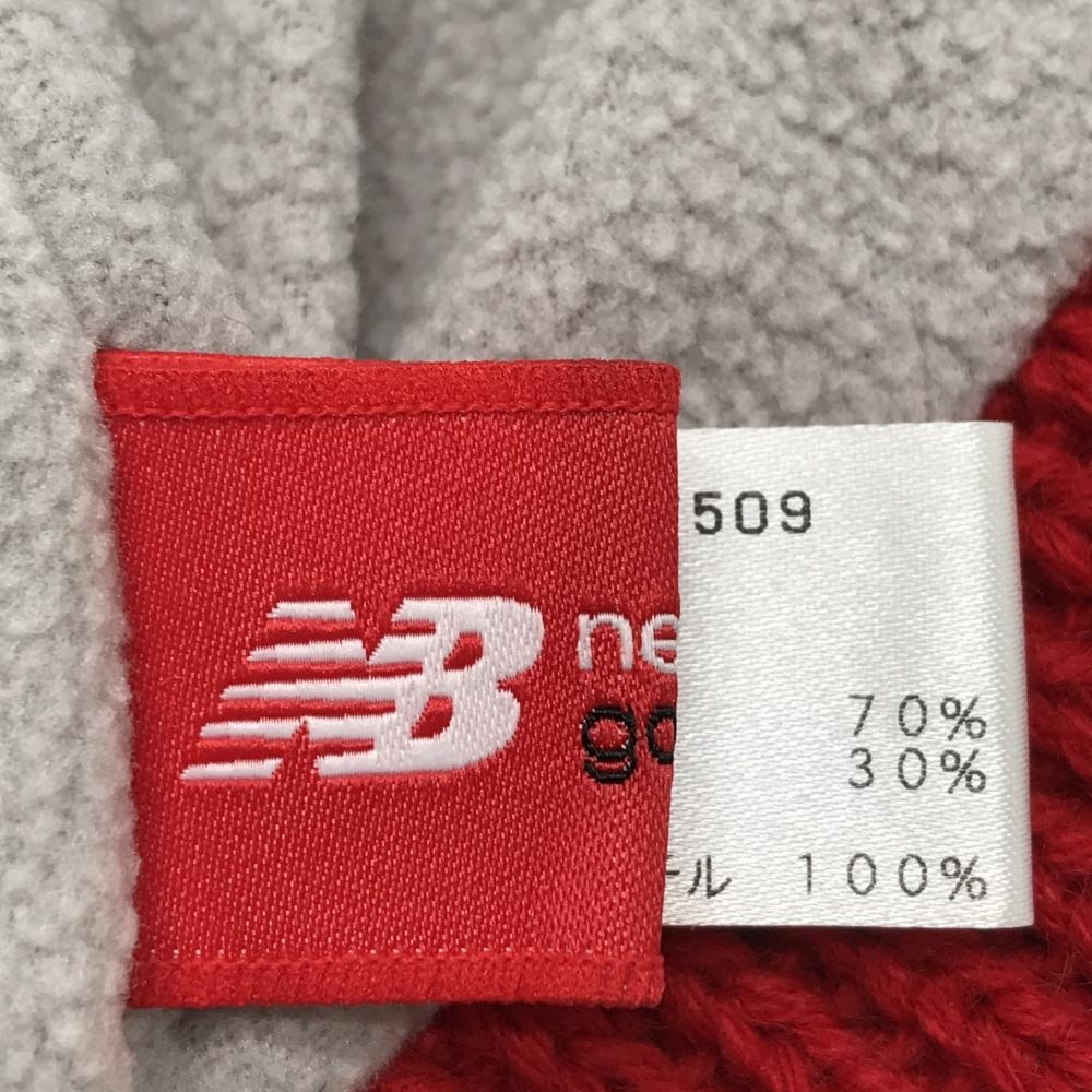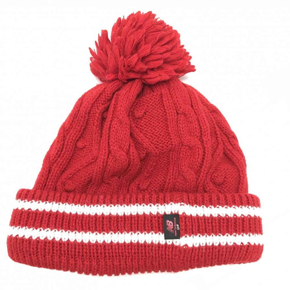 【超美品】ニューバランスゴルフ ニット帽 レッド×白 ボンボン付き 裏フリース ウール混 FR ゴルフウェア New Balance