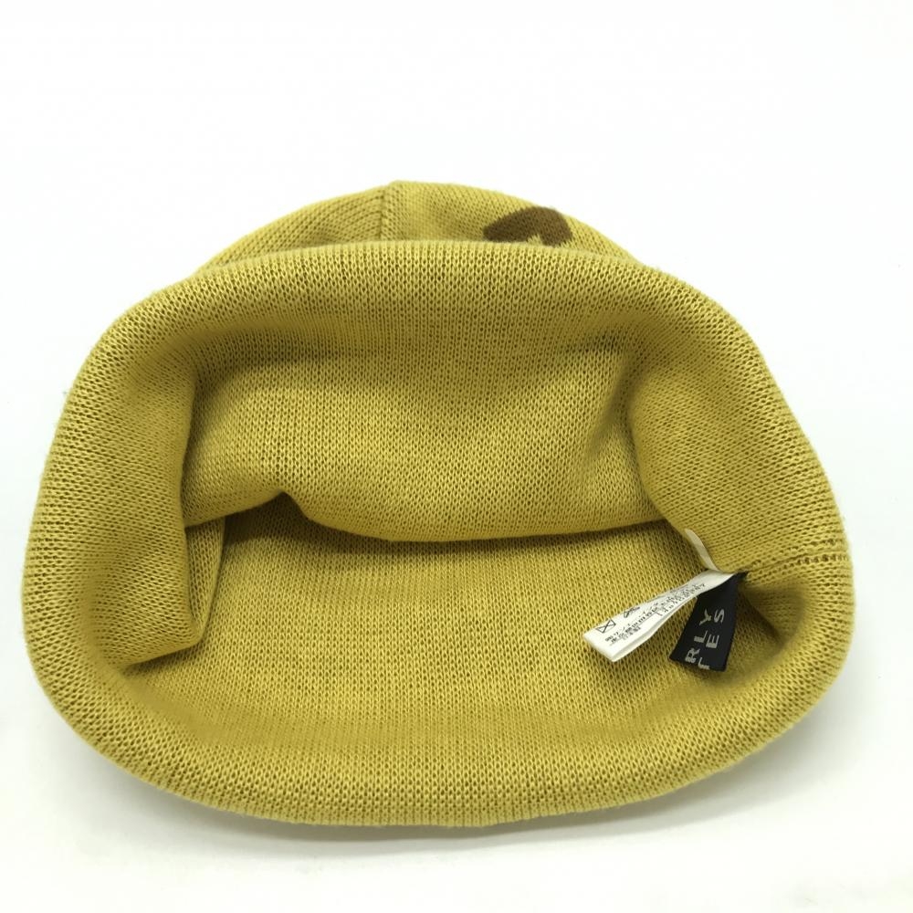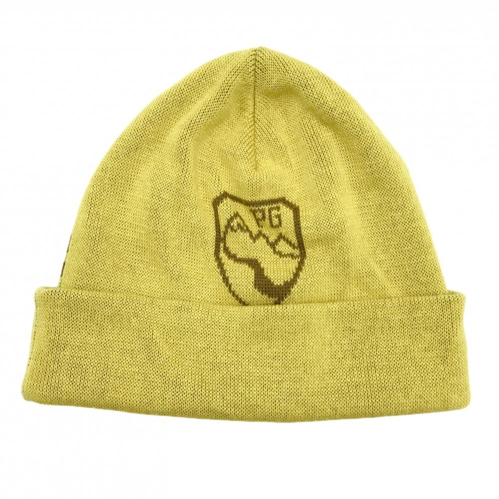 【超美品】パーリーゲイツ ニット帽 イエロー×ブラウン ウール混 ロゴ FR ゴルフウェア PEARLY GATES