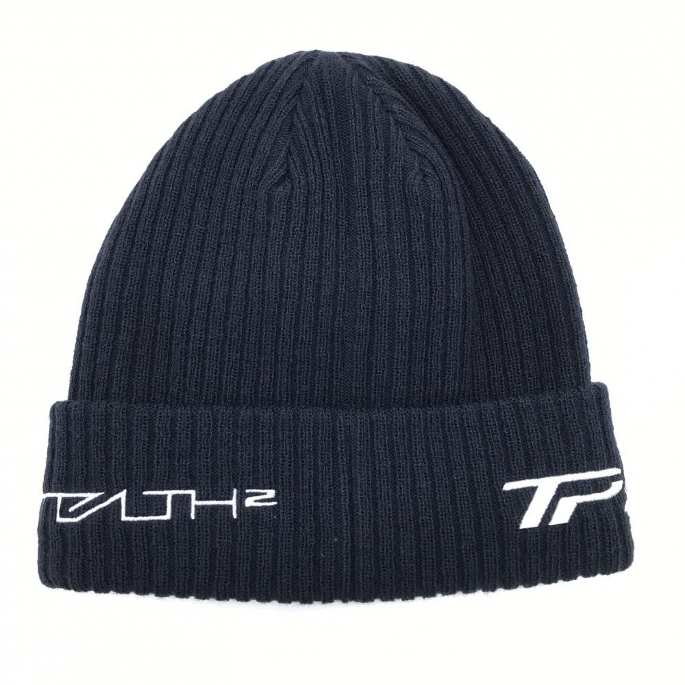 【超美品】テーラーメイド ニット帽 ネイビー×イエロー ストライプ編み フリー(57-59cm) ゴルフウェア 2023年モデル TaylorMade