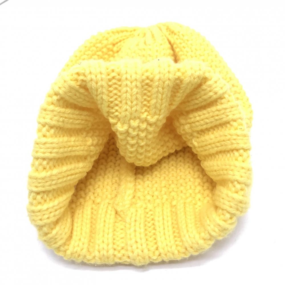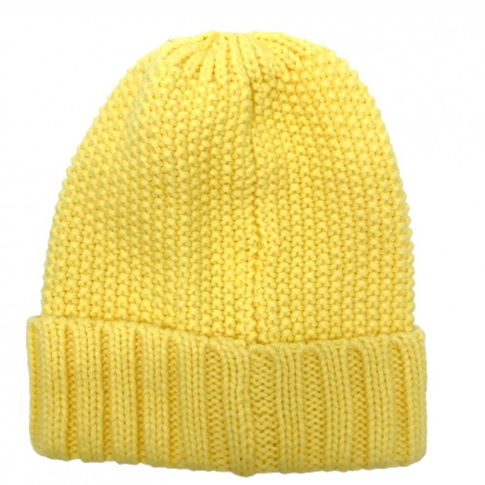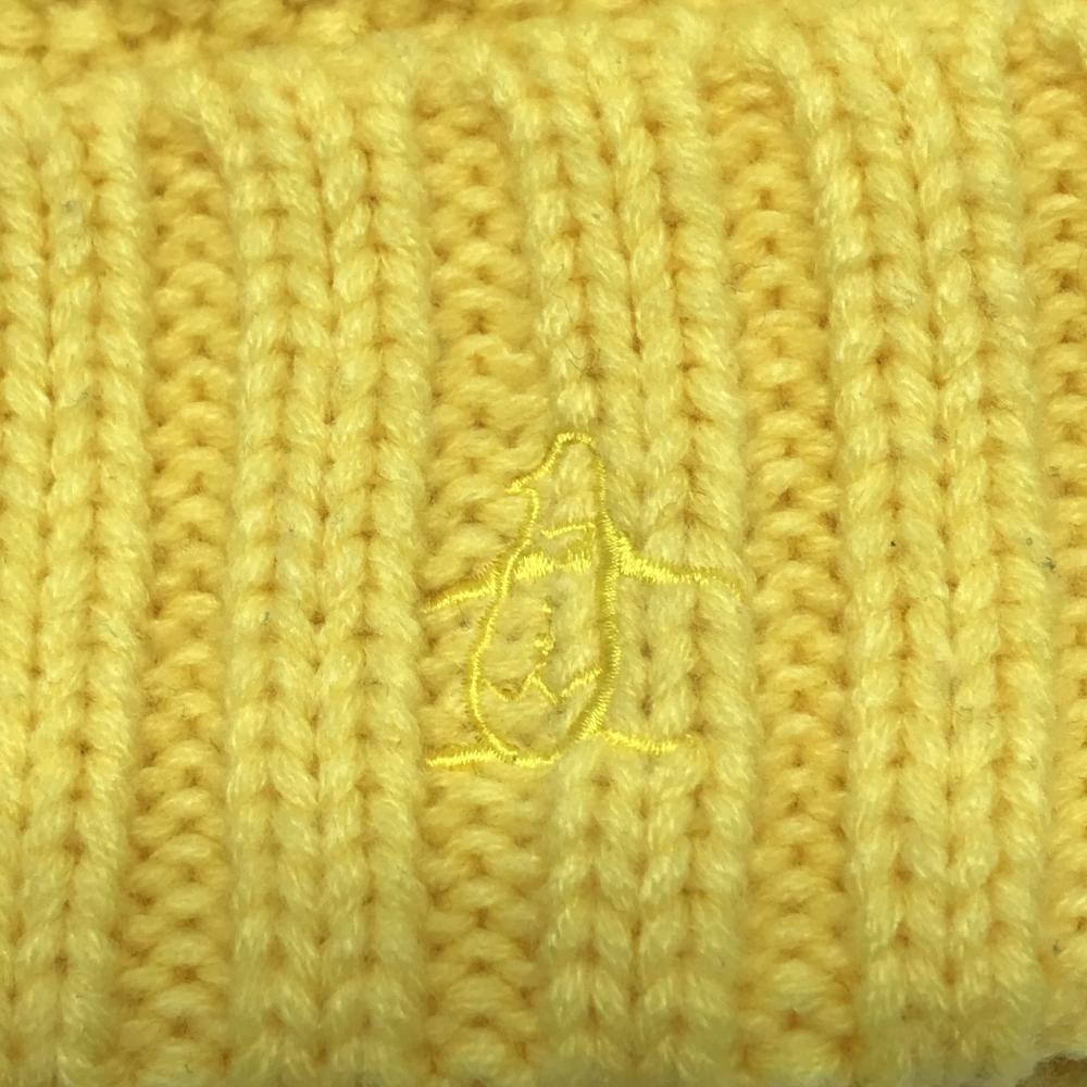 【超美品】マンシングウェア ニット帽 イエロー ロゴ刺しゅう アクリル100% F(55-59cm) ゴルフウェア Munsingwear