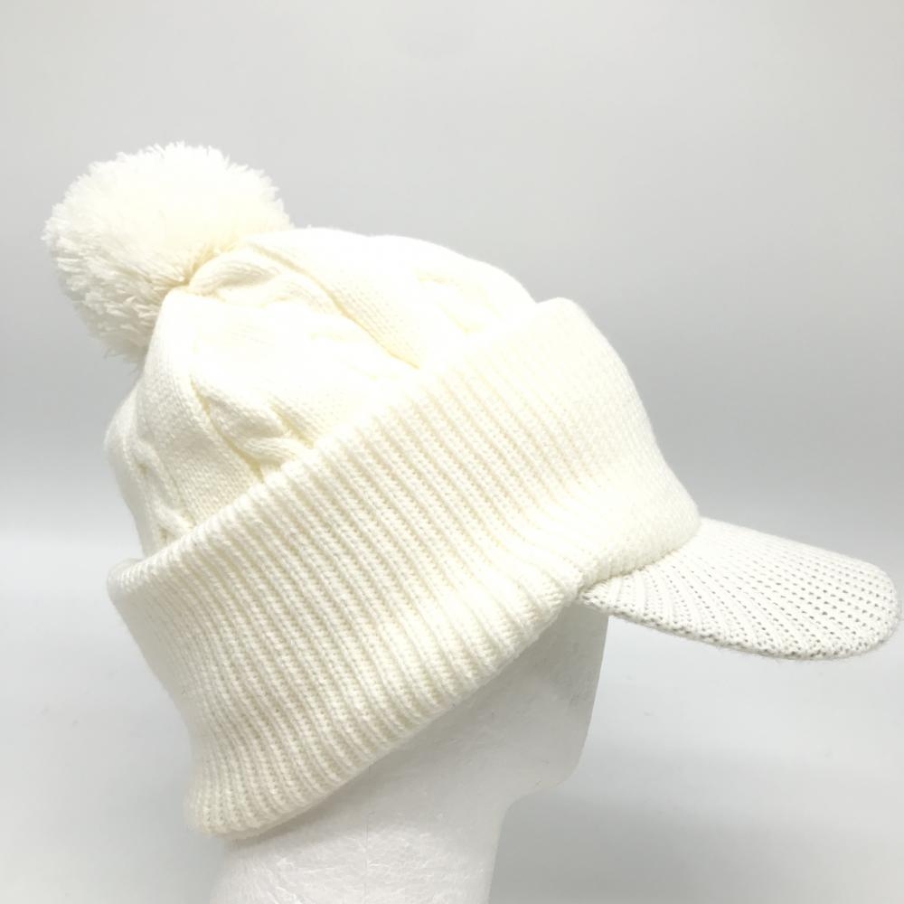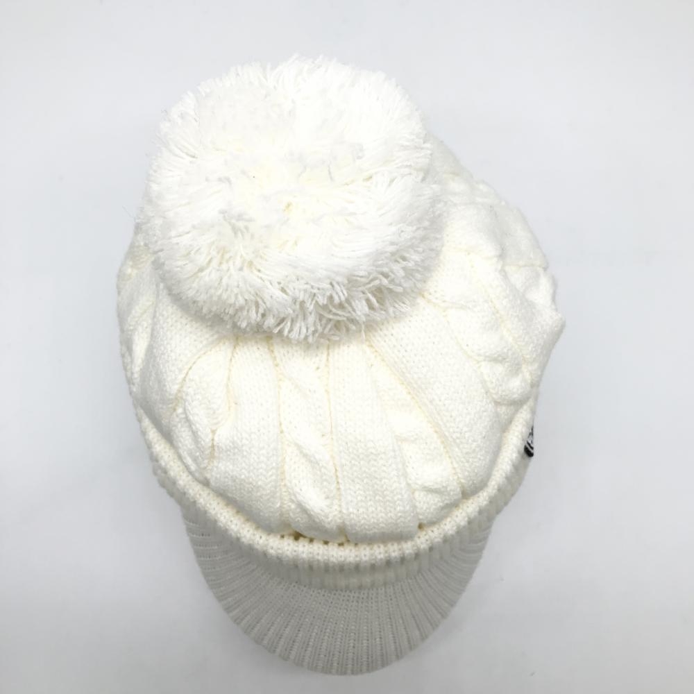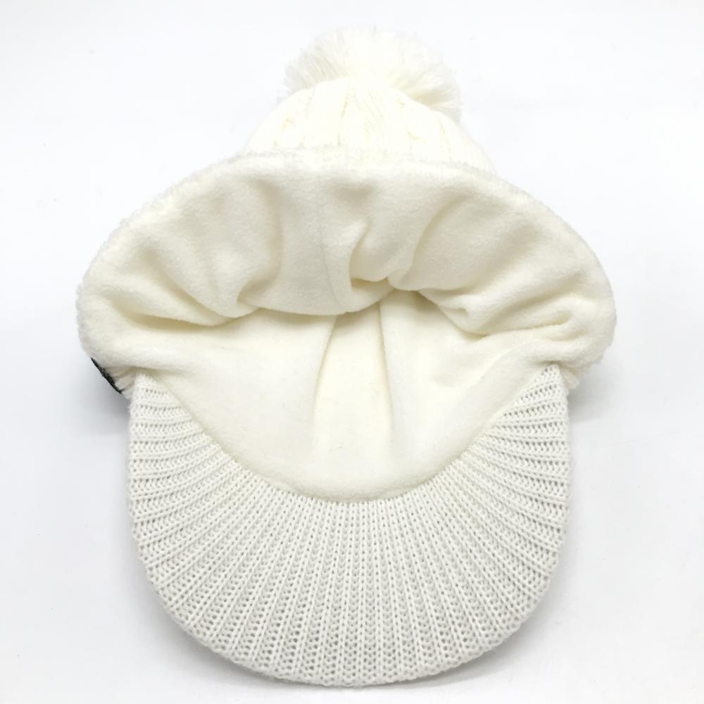 【美品】カッパ つば付ニット帽 白 ケーブル編み ボンボン付 F ゴルフウェア Kappa
