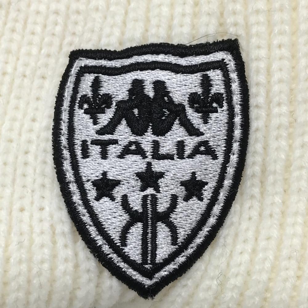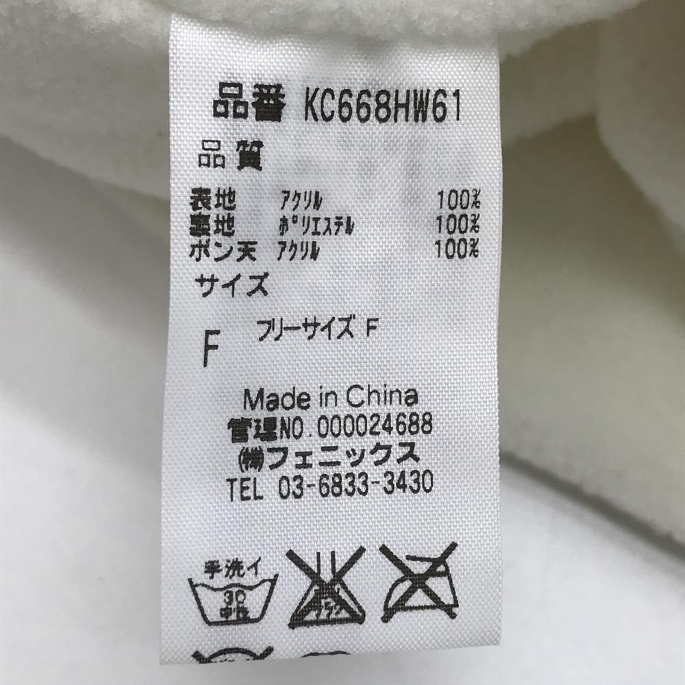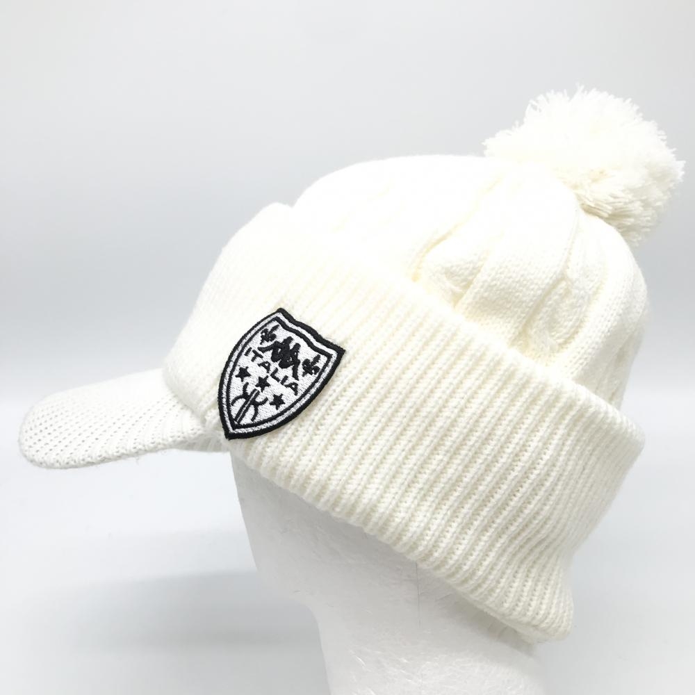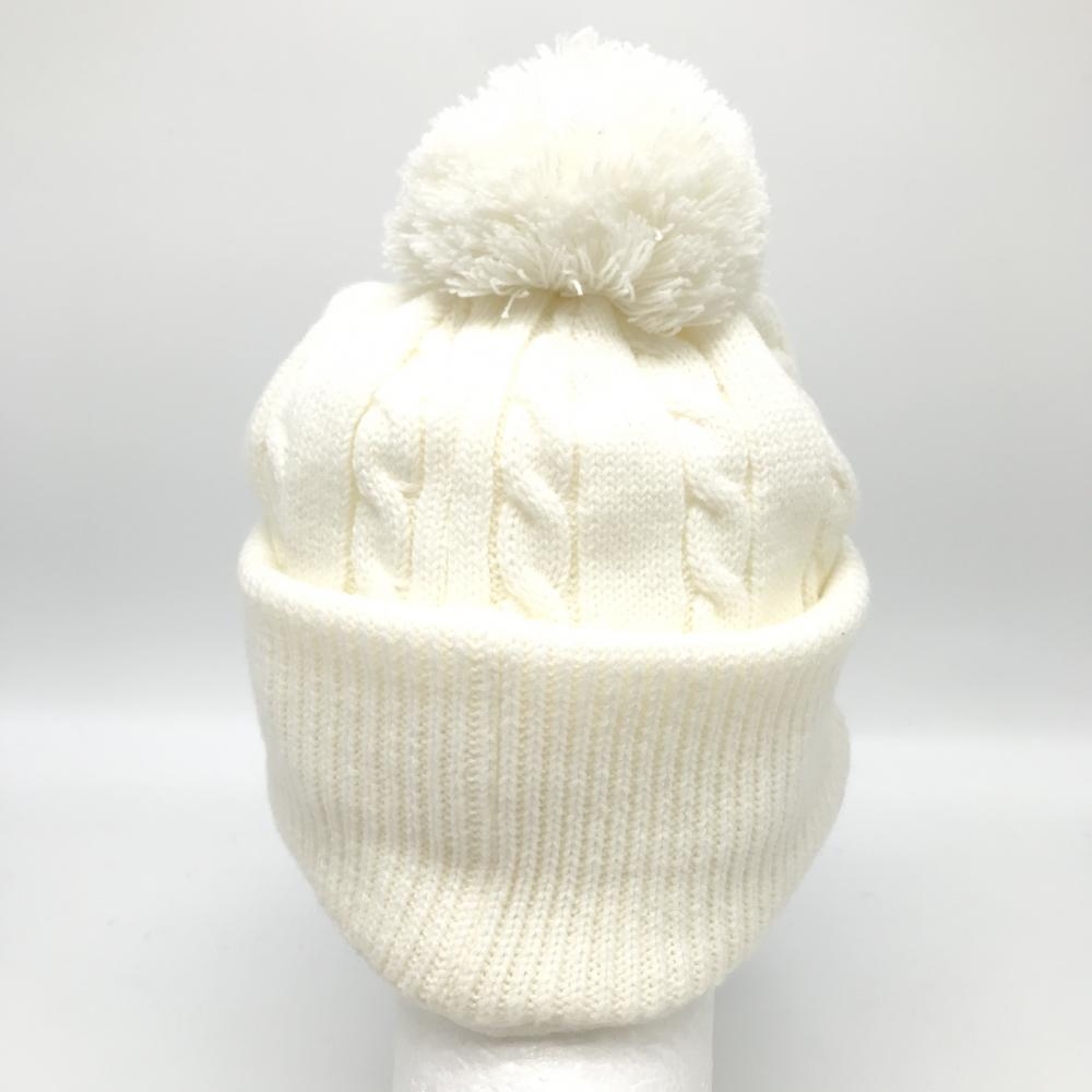 【美品】カッパ つば付ニット帽 白 ケーブル編み ボンボン付 F ゴルフウェア Kappa