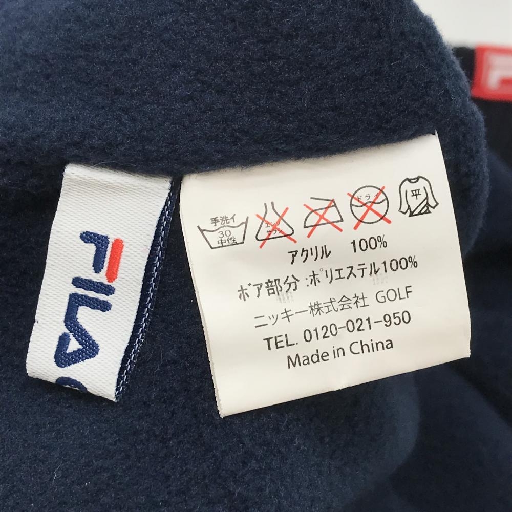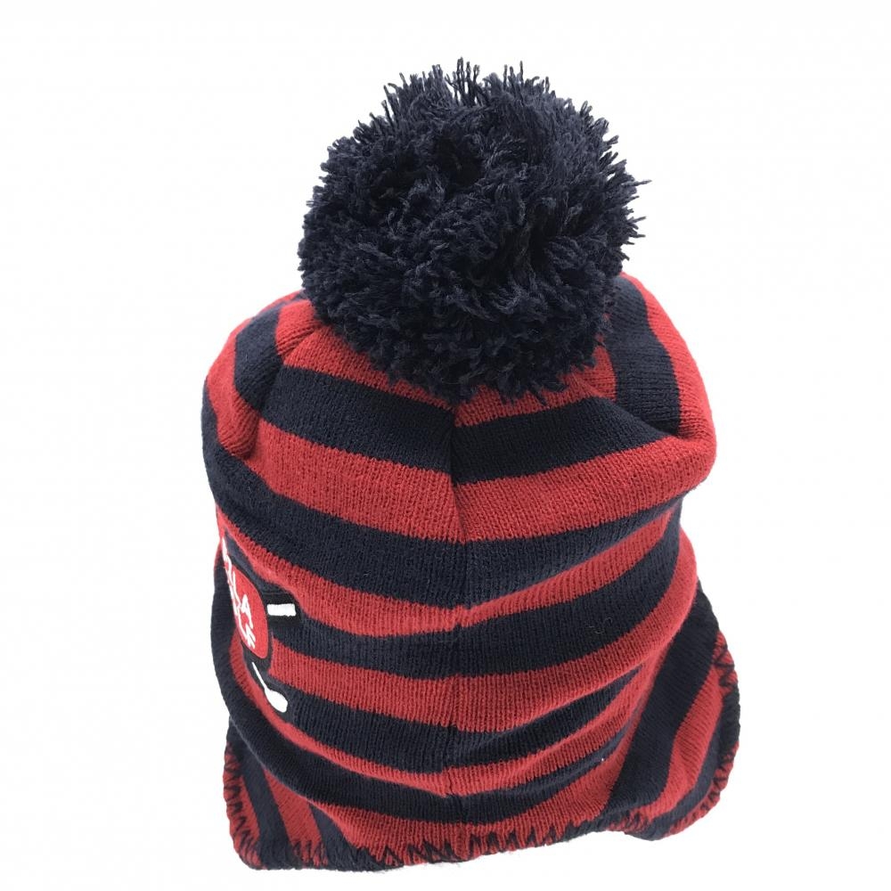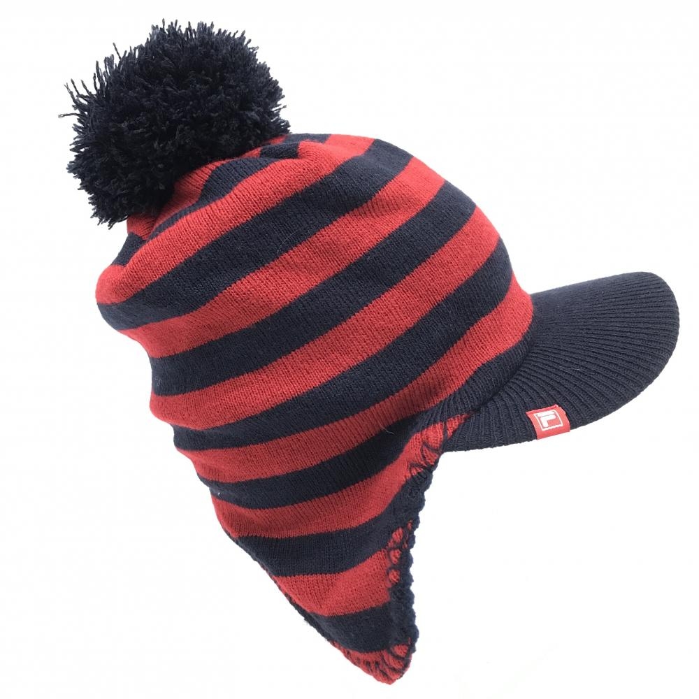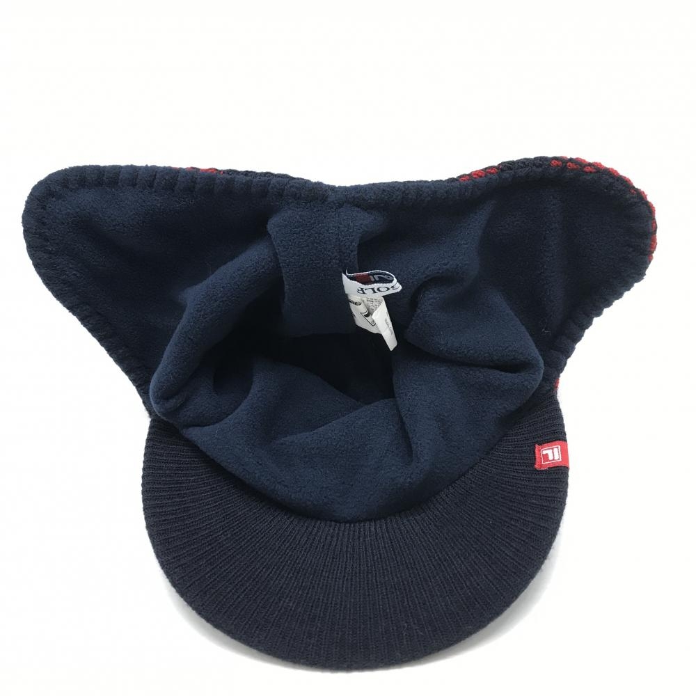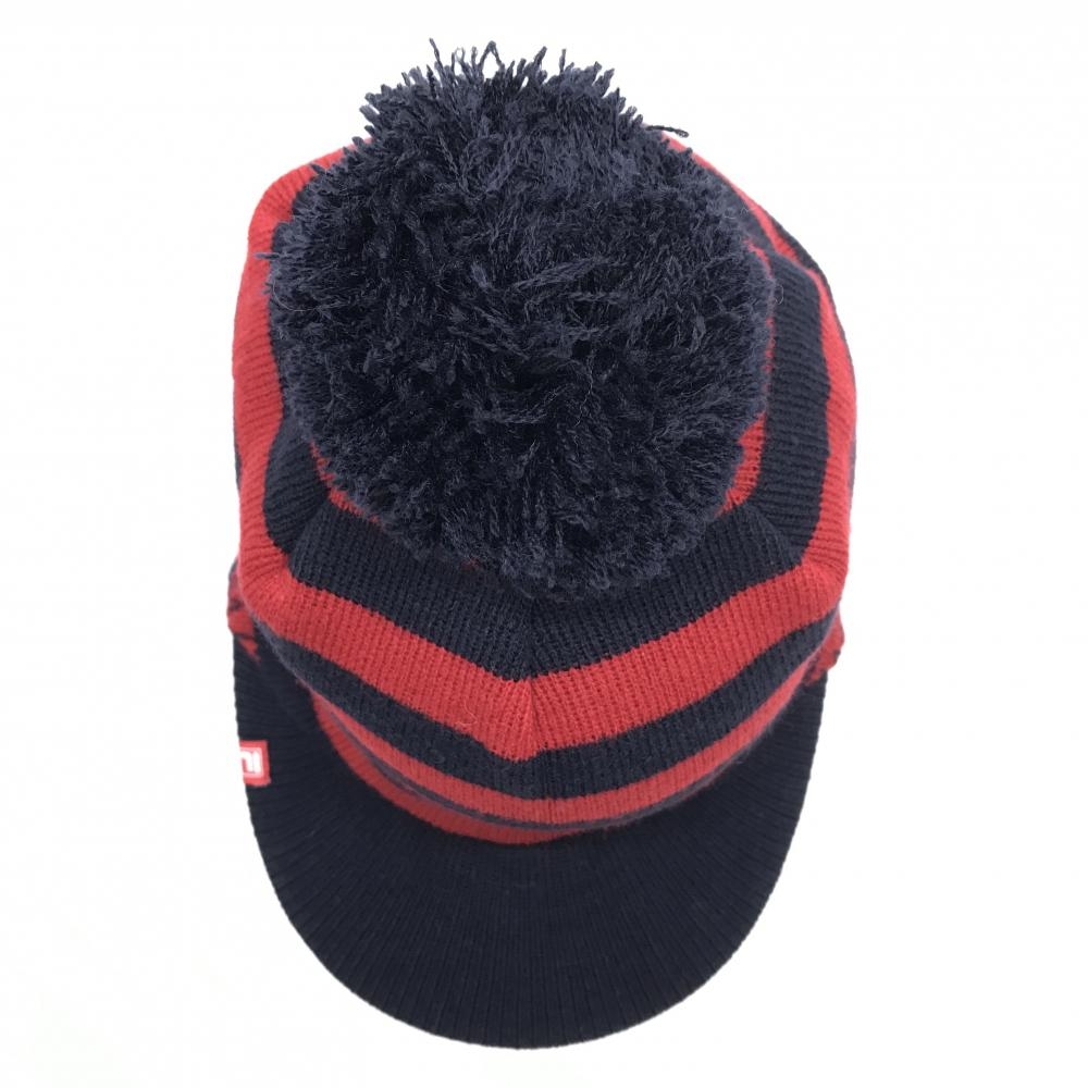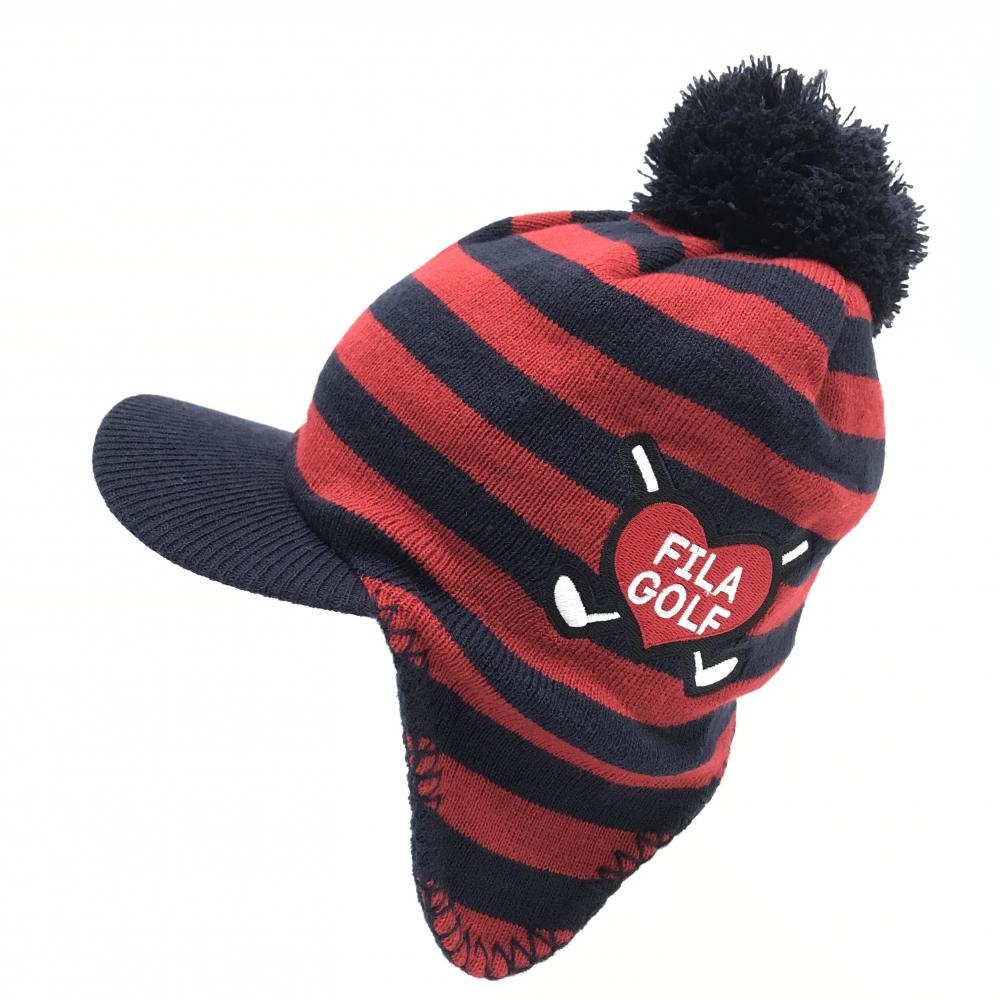 【超美品】フィラゴルフ つば付ニット帽 ネイビー×レッド ボーダー ボンボン付 内側フリース レディース ゴルフウェア FILA GOLF