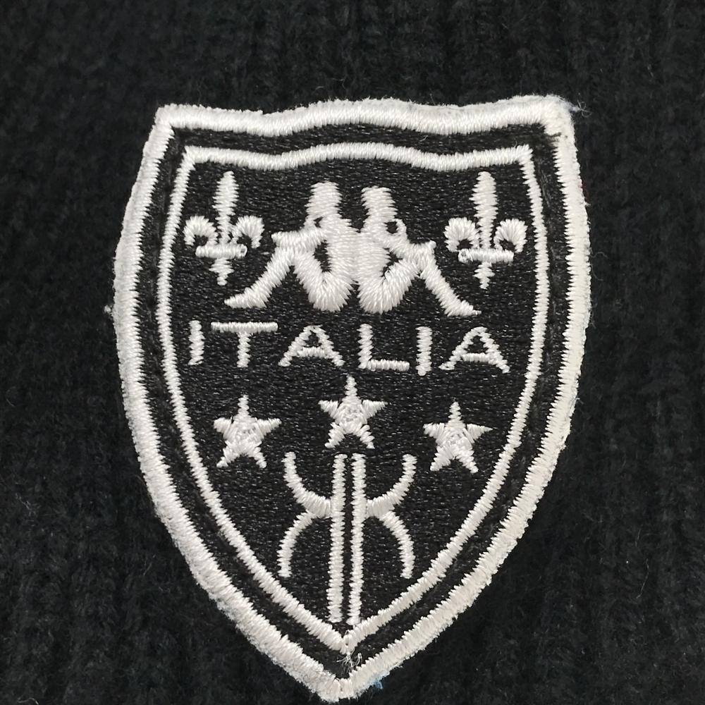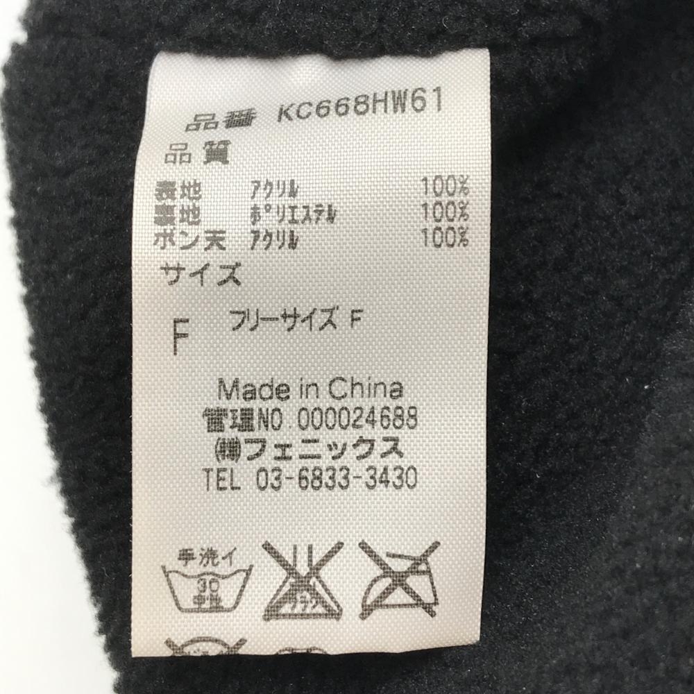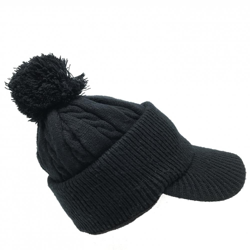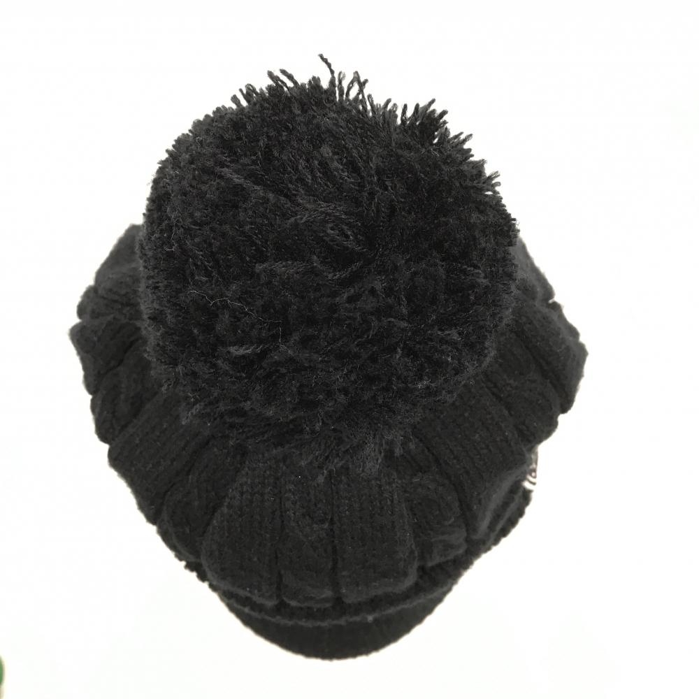 【美品】カッパ つば付ニット帽 黒 ケーブル編み ボンボン付 フリーサイズ ゴルフウェア Kappa