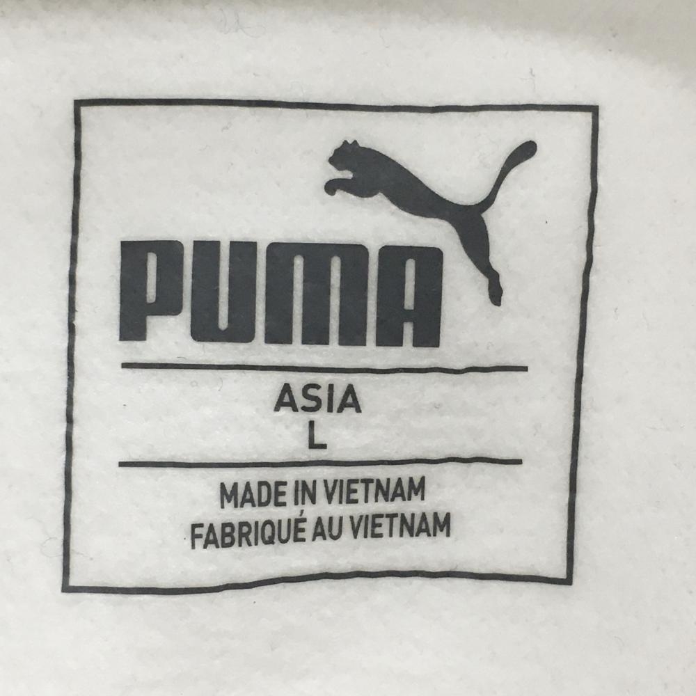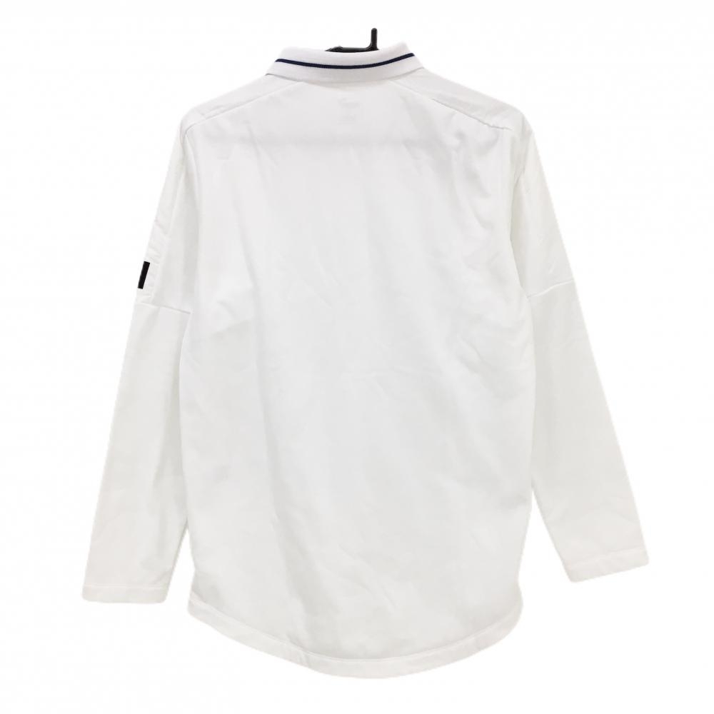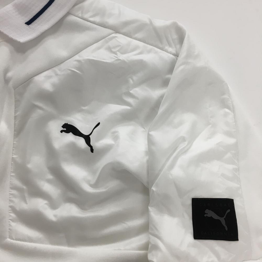 【超美品】プーマ 長袖ポロシャツ 白×ネイビー 胸元異素材切替 裏起毛 メンズ L ゴルフウェア PUMA