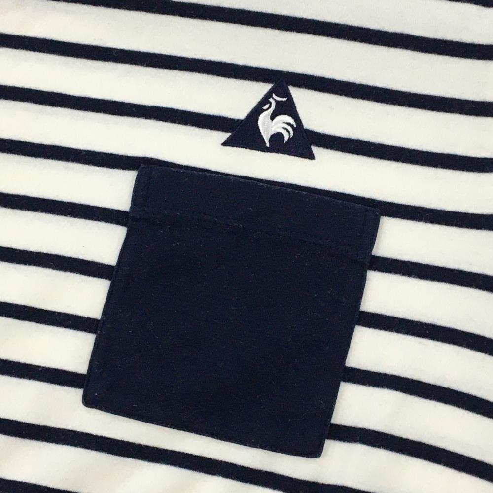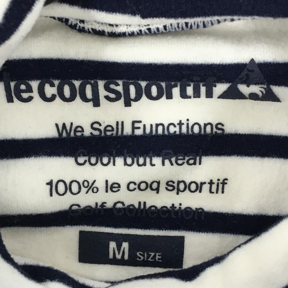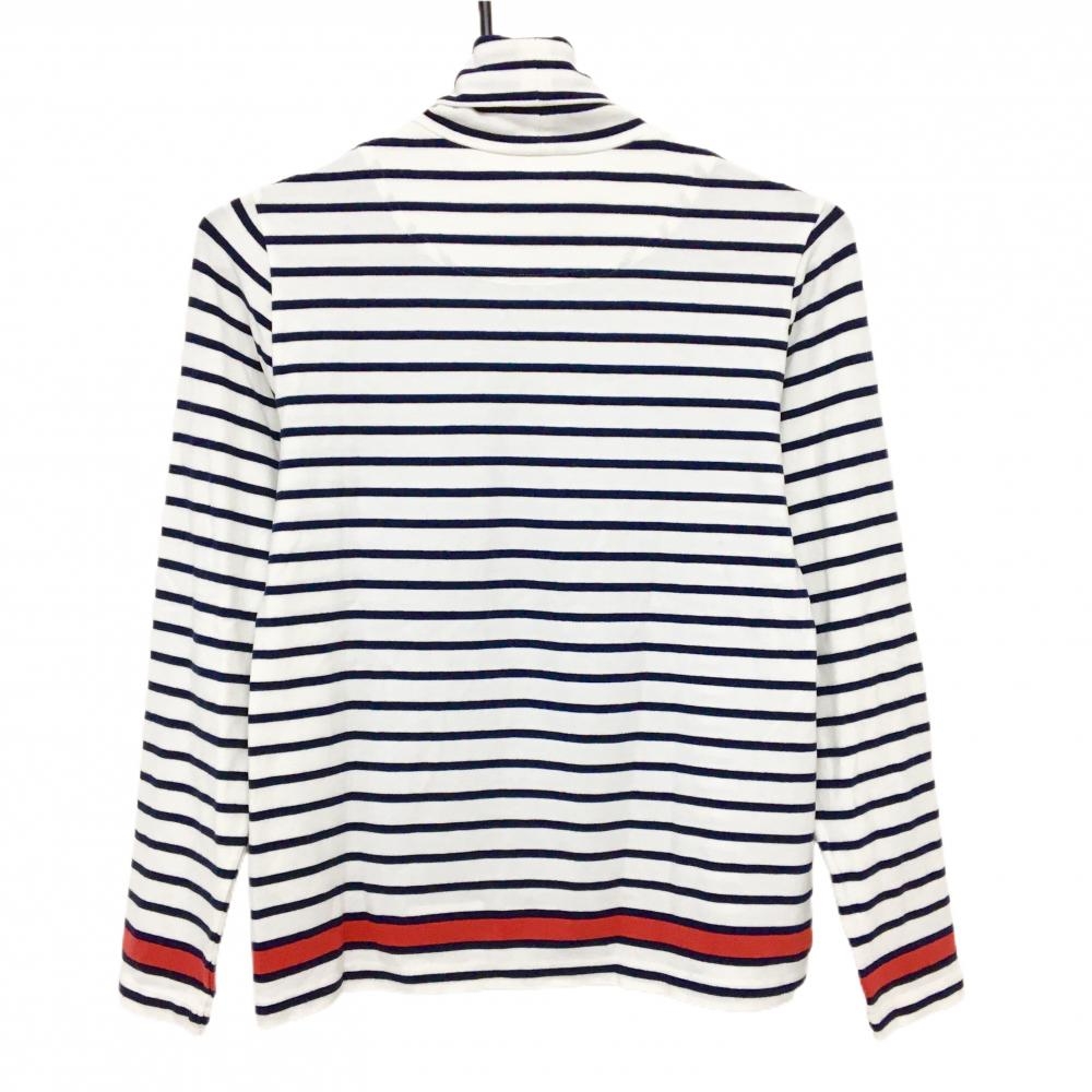 【美品】ルコックゴルフ 長袖タートルネックシャツ 白×ネイビー ボーダー 微起毛素材 レディース M ゴルフウェア le coq sportif