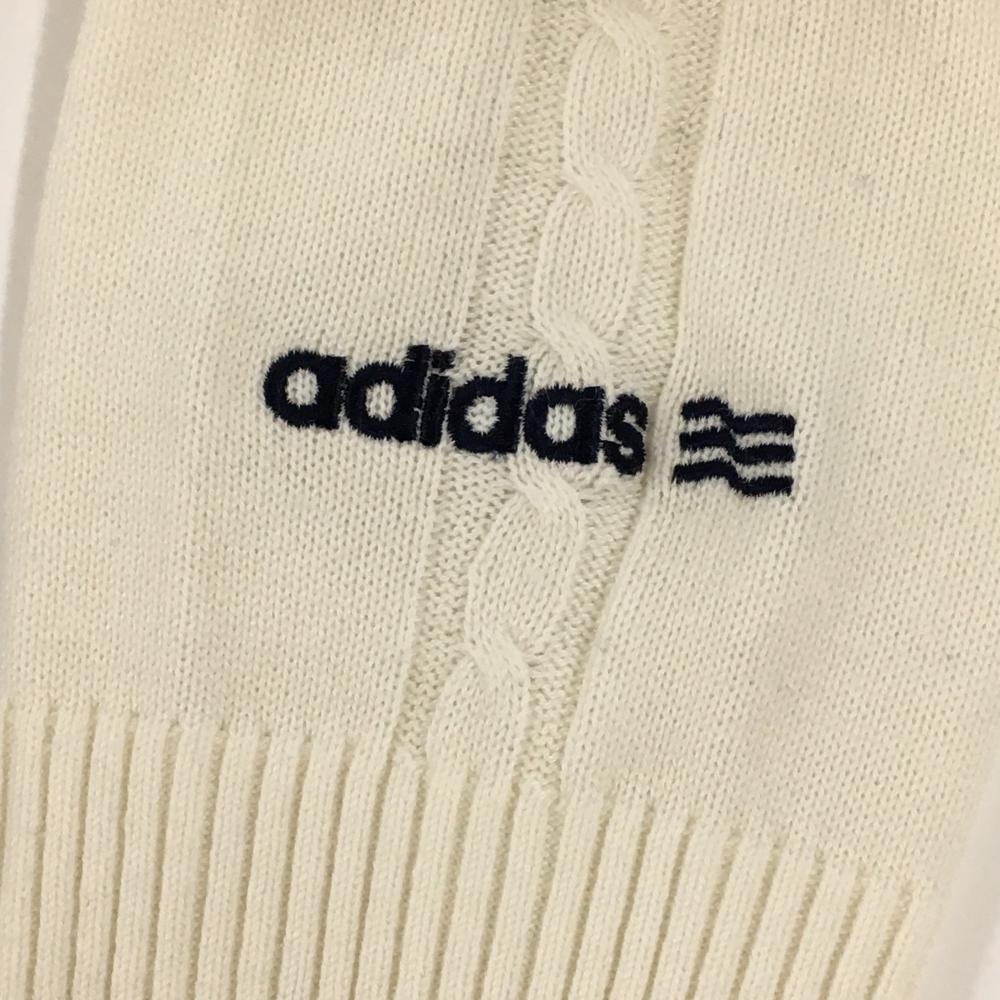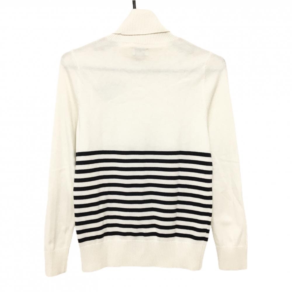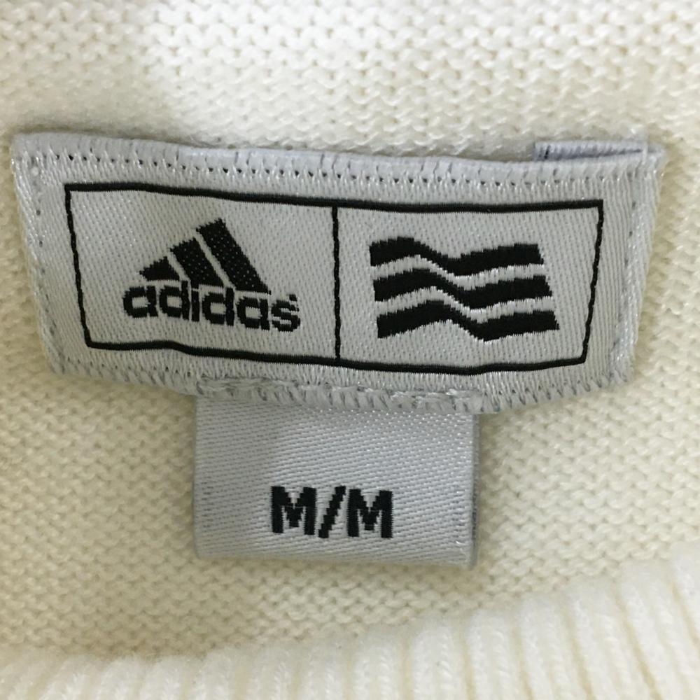 【美品】アディダス タートルネックセーター 白×黒 下部ボーダー 袖一部ケーブル編み ニット レディース M/M ゴルフウェア adidas