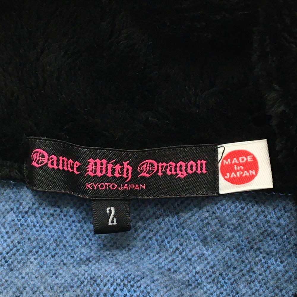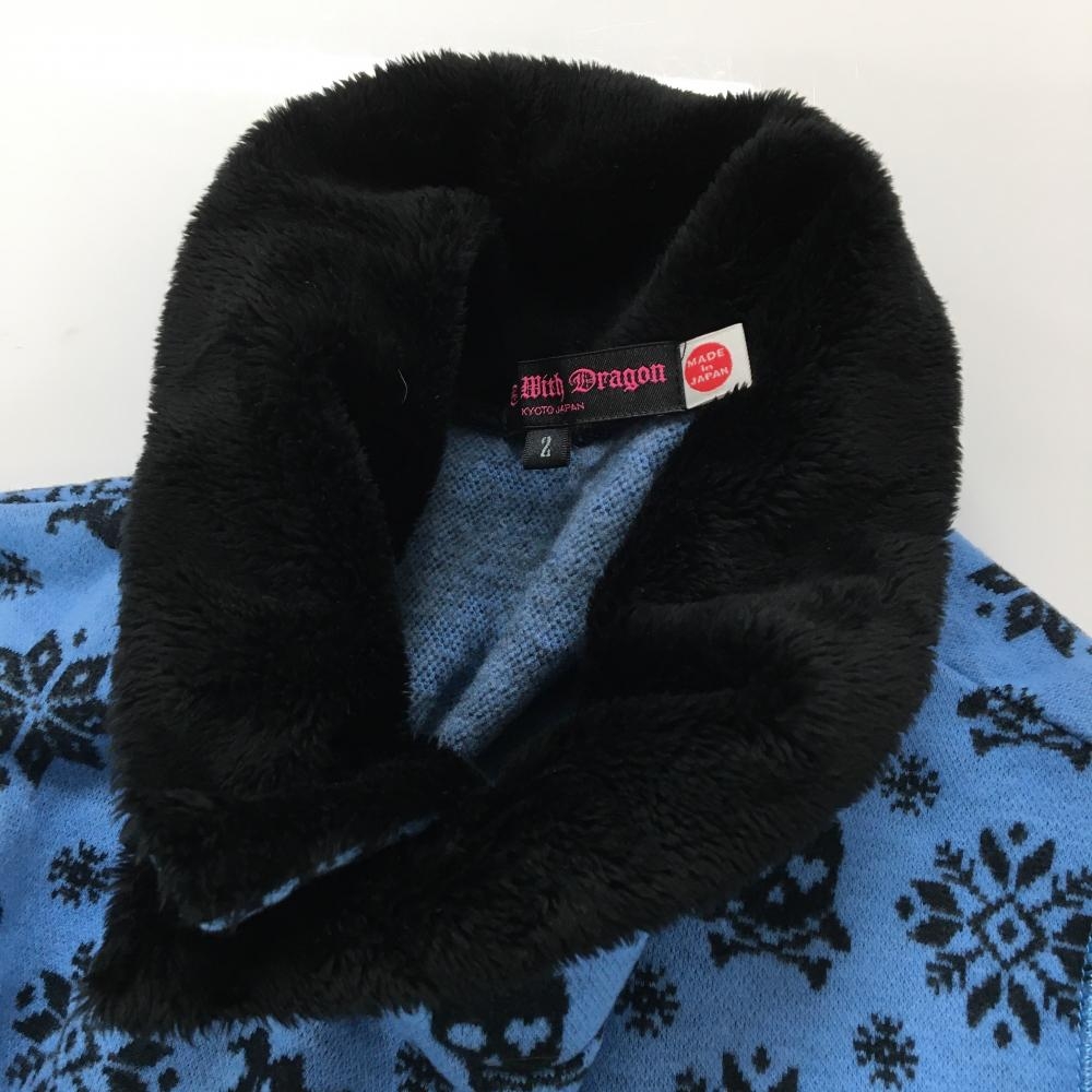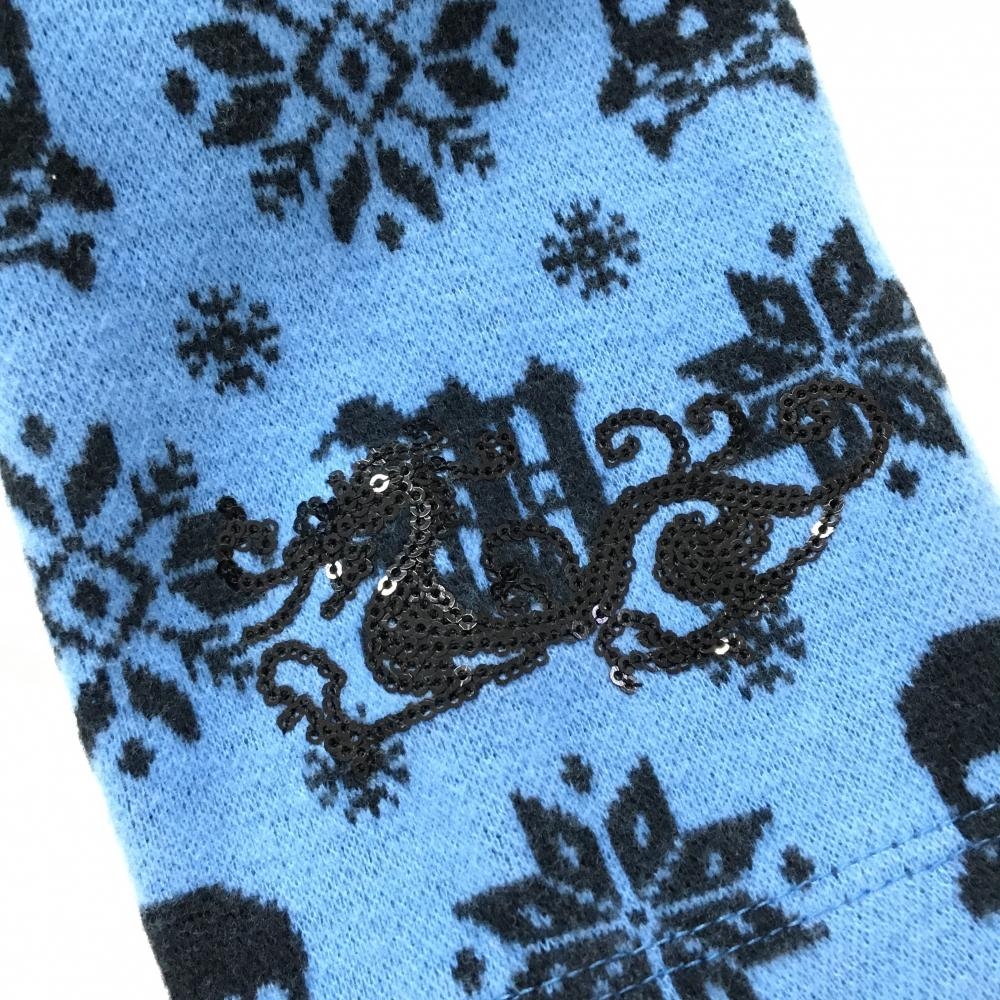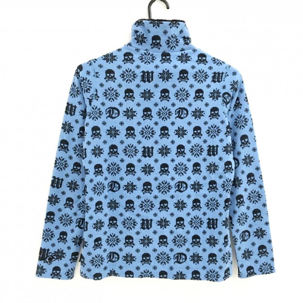 【超美品】ダンスウィズドラゴン 長袖ハイネックシャツ ライトブルー×黒 スカル総柄 レディース 2(M) ゴルフウェア Dance With Dragon