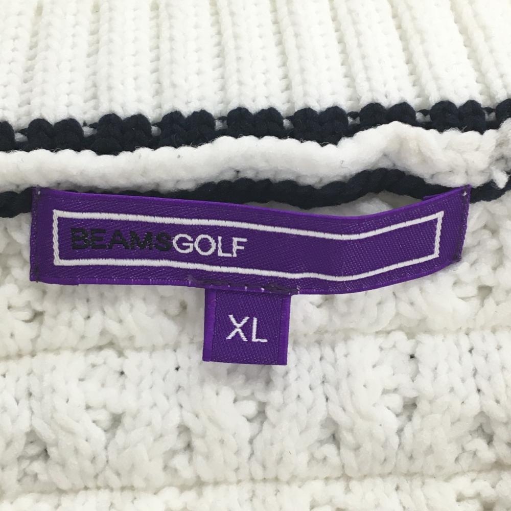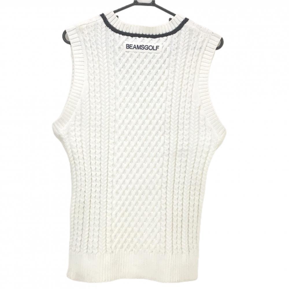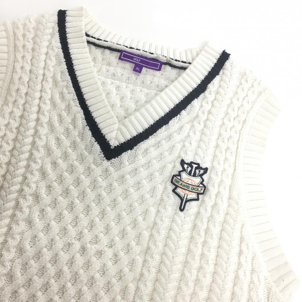 ビームスゴルフ ニットベスト 白×ネイビー ケーブル編み Vネック メンズ XL ゴルフウェア BEAMS GOLF