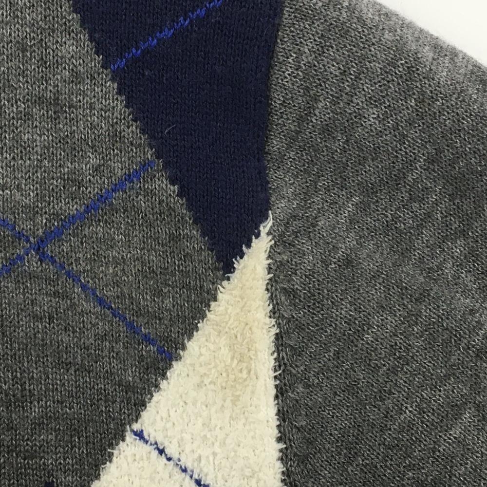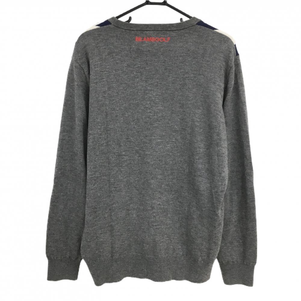 ビームスゴルフ 裏地付セーター グレー×ネイビー 前身頃アーガイル柄 ウール混 ニット メンズ XL ゴルフウェア BEAMS GOLF