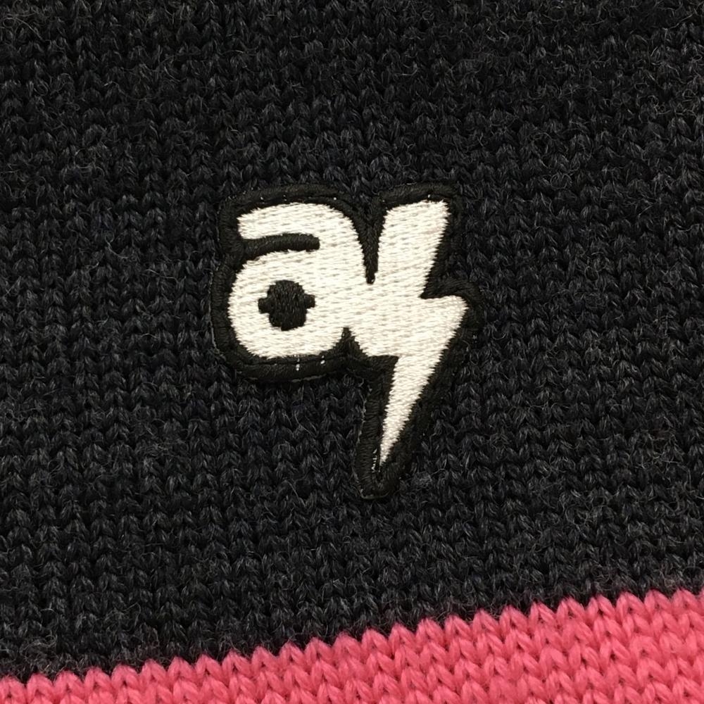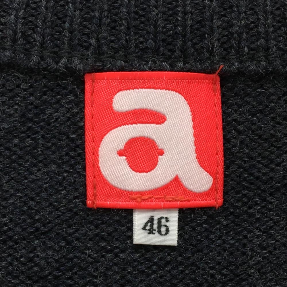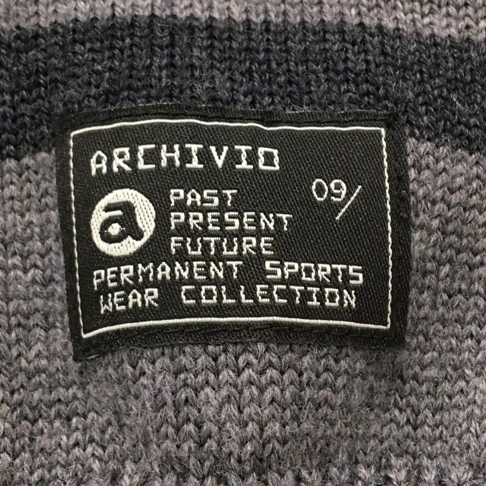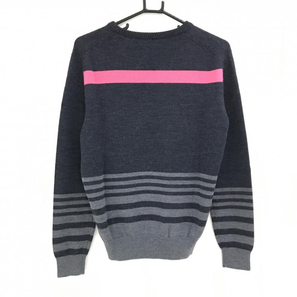 【超美品】アルチビオ セーター ダークグレー 胸元ピンクライン 一部ボーダー ニット ウール100% メンズ 46(M) ゴルフウェア archivio