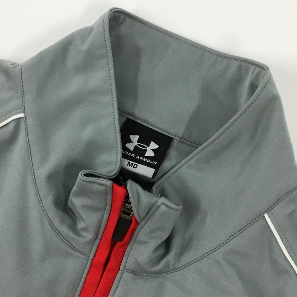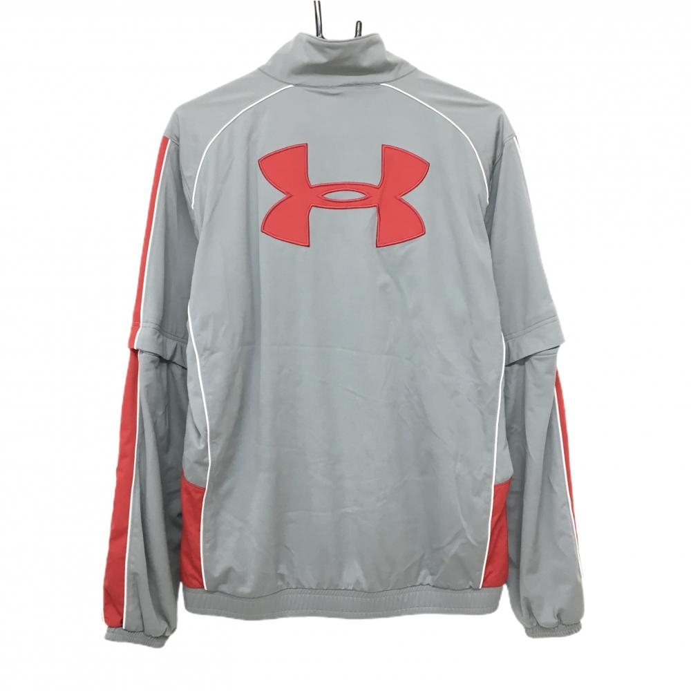 アンダーアーマー 2WAYジャケットブルゾン グレー×レッド 袖着脱可 ハーフジップ 裏起毛 メンズ MD ゴルフウェア UNDER ARMOUR