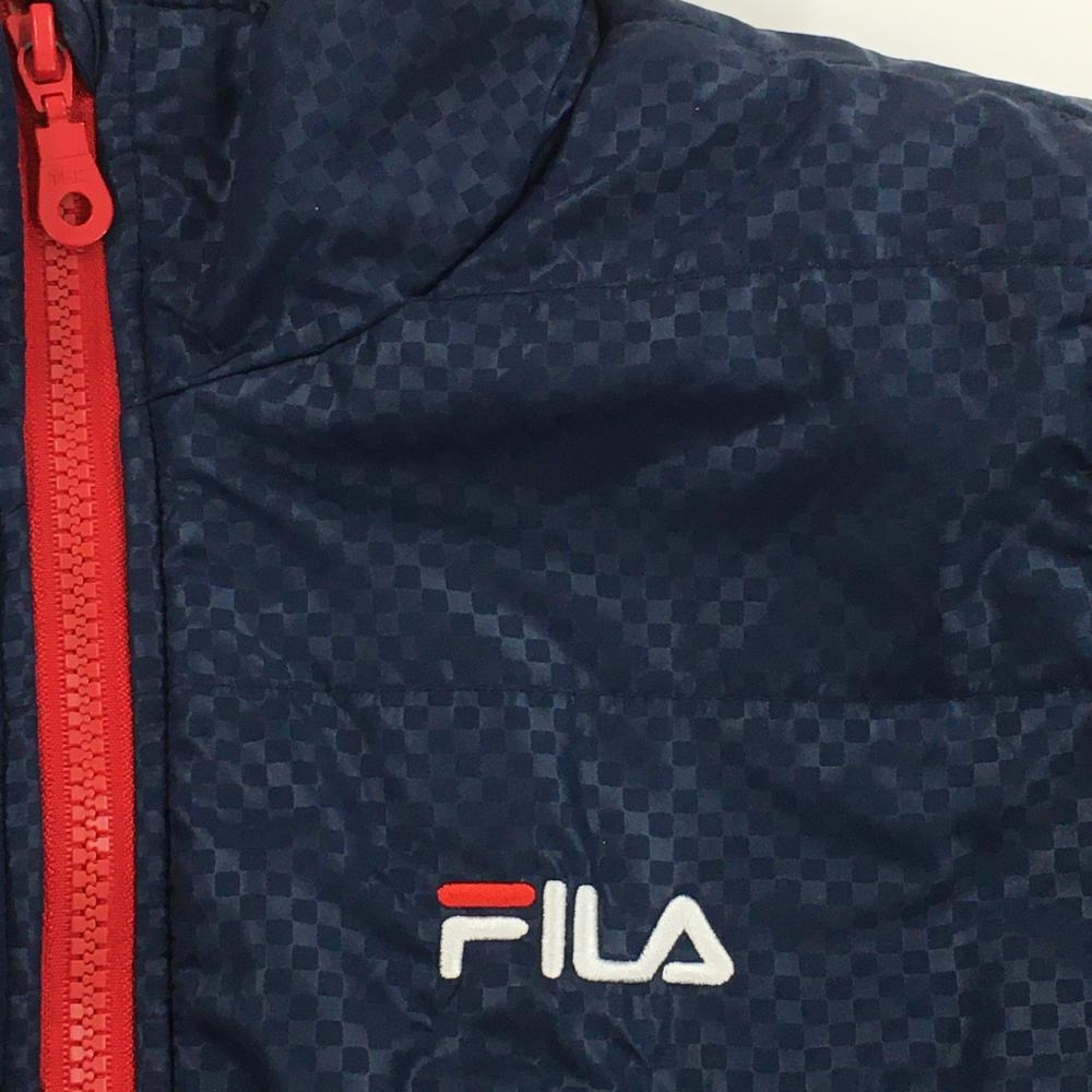 【超美品】フィラゴルフ 中綿ジャケット ネイビー×レッド ブロックチェック地模様 ロゴ刺しゅう レディース M ゴルフウェア FILA GOLF