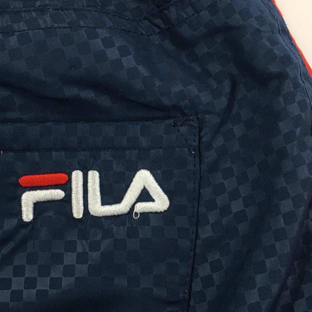 【美品】フィラゴルフ 中綿パンツ ネイビー×レッド ブロックチェック地模様 レディース M ゴルフウェア FILA GOLF