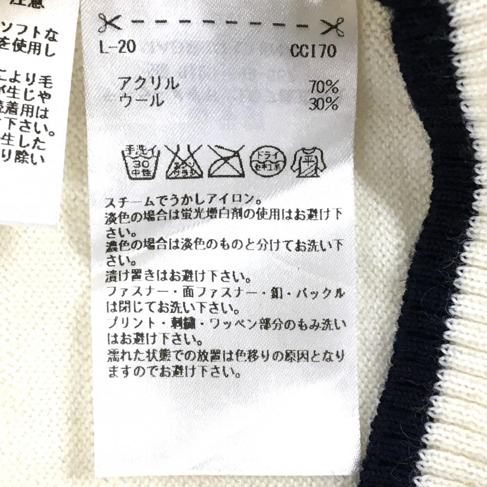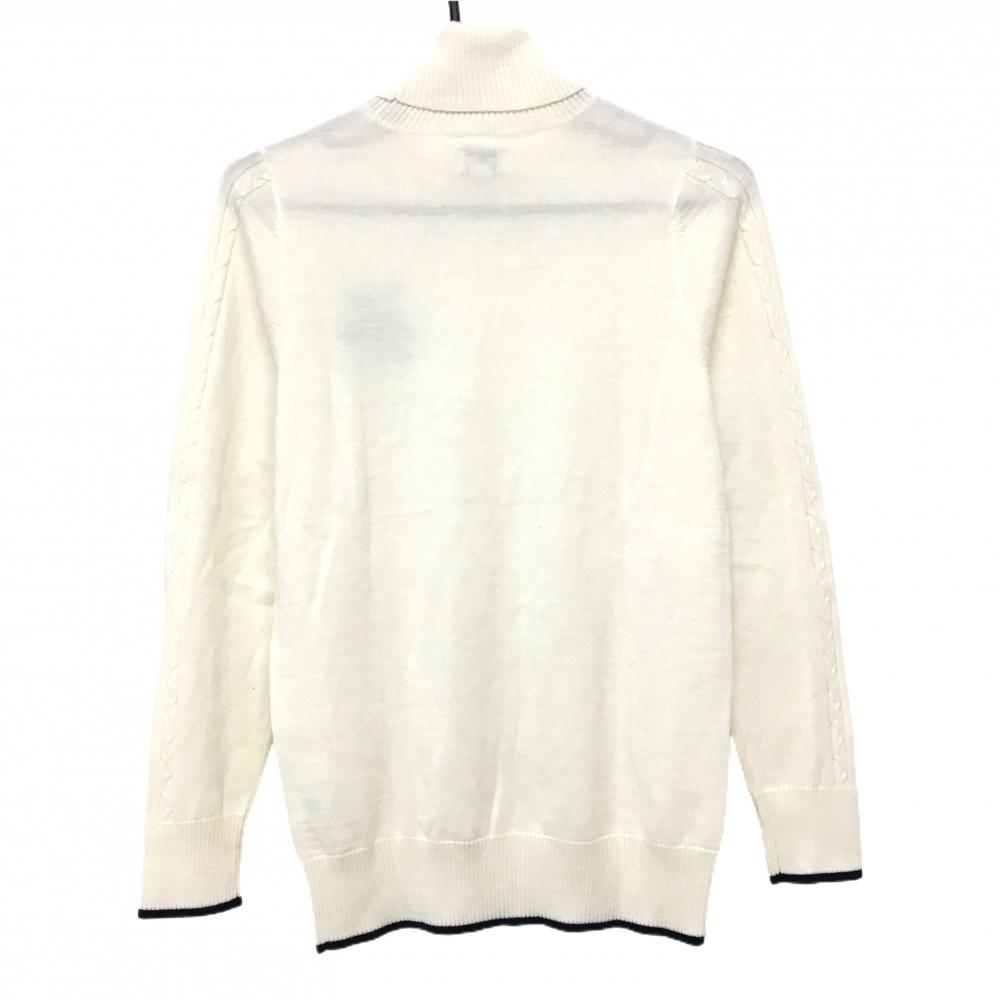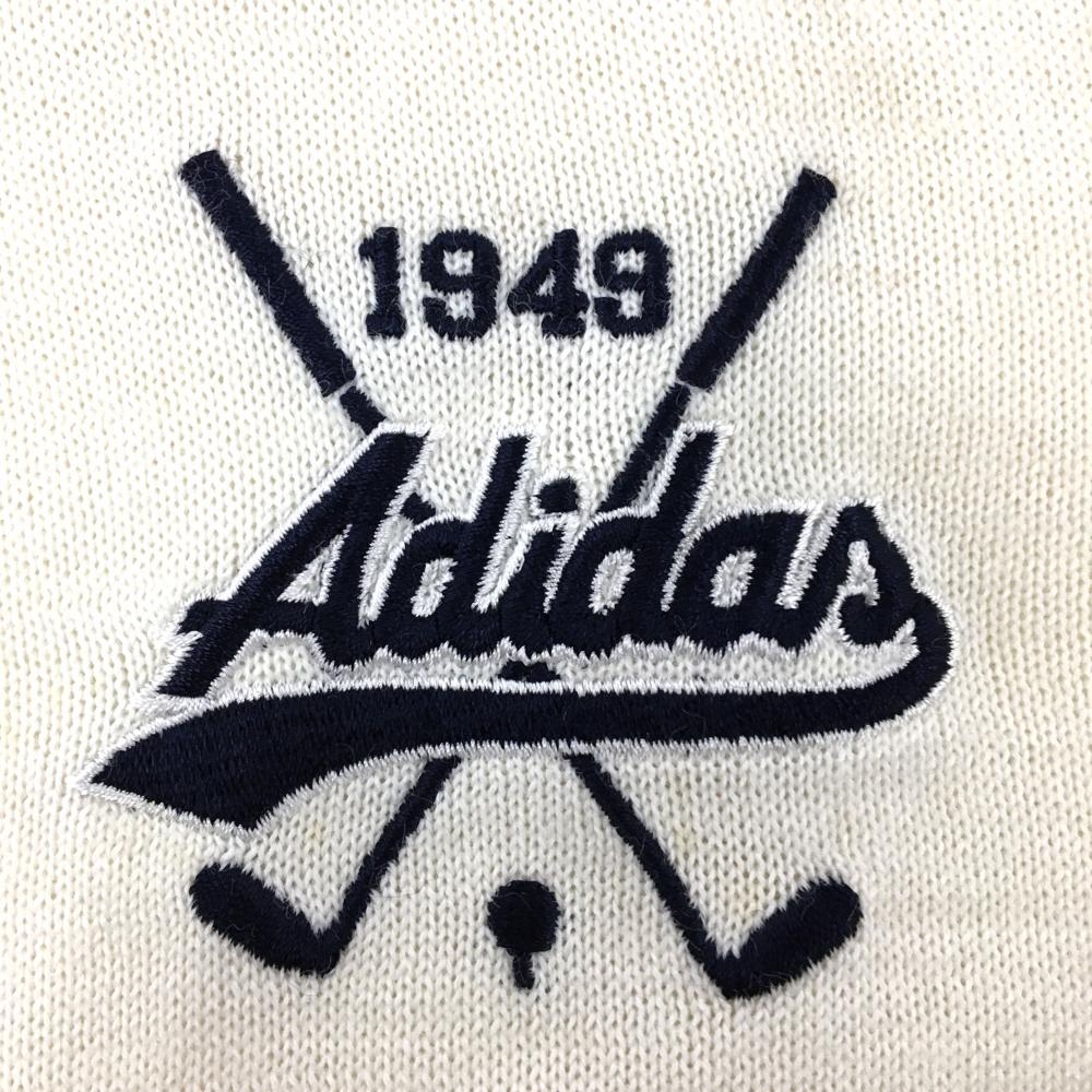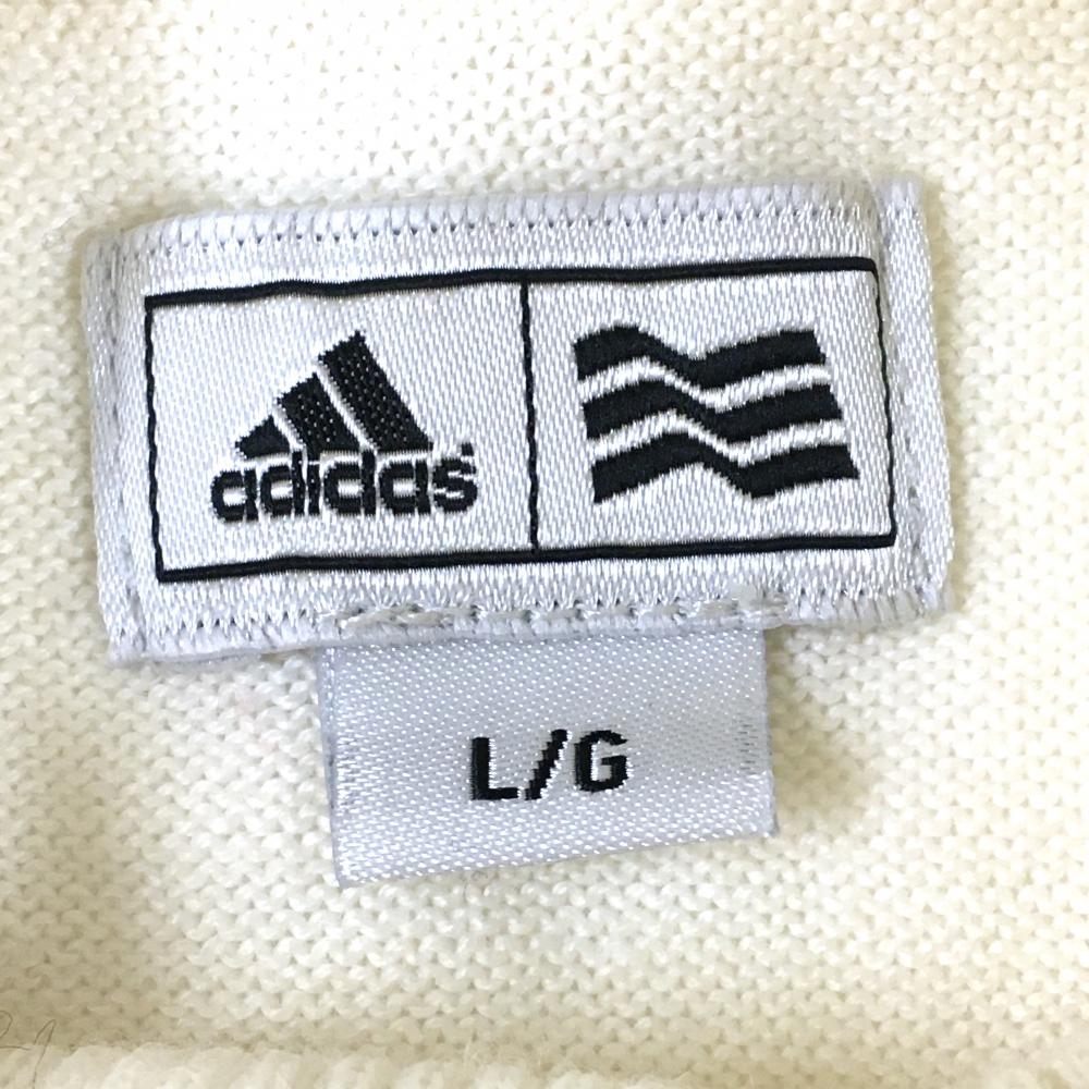 【超美品】アディダス セーター 白×ネイビー 袖ケーブル編み ロゴ刺しゅう ウール混 レディース L/G ゴルフウェア adidas