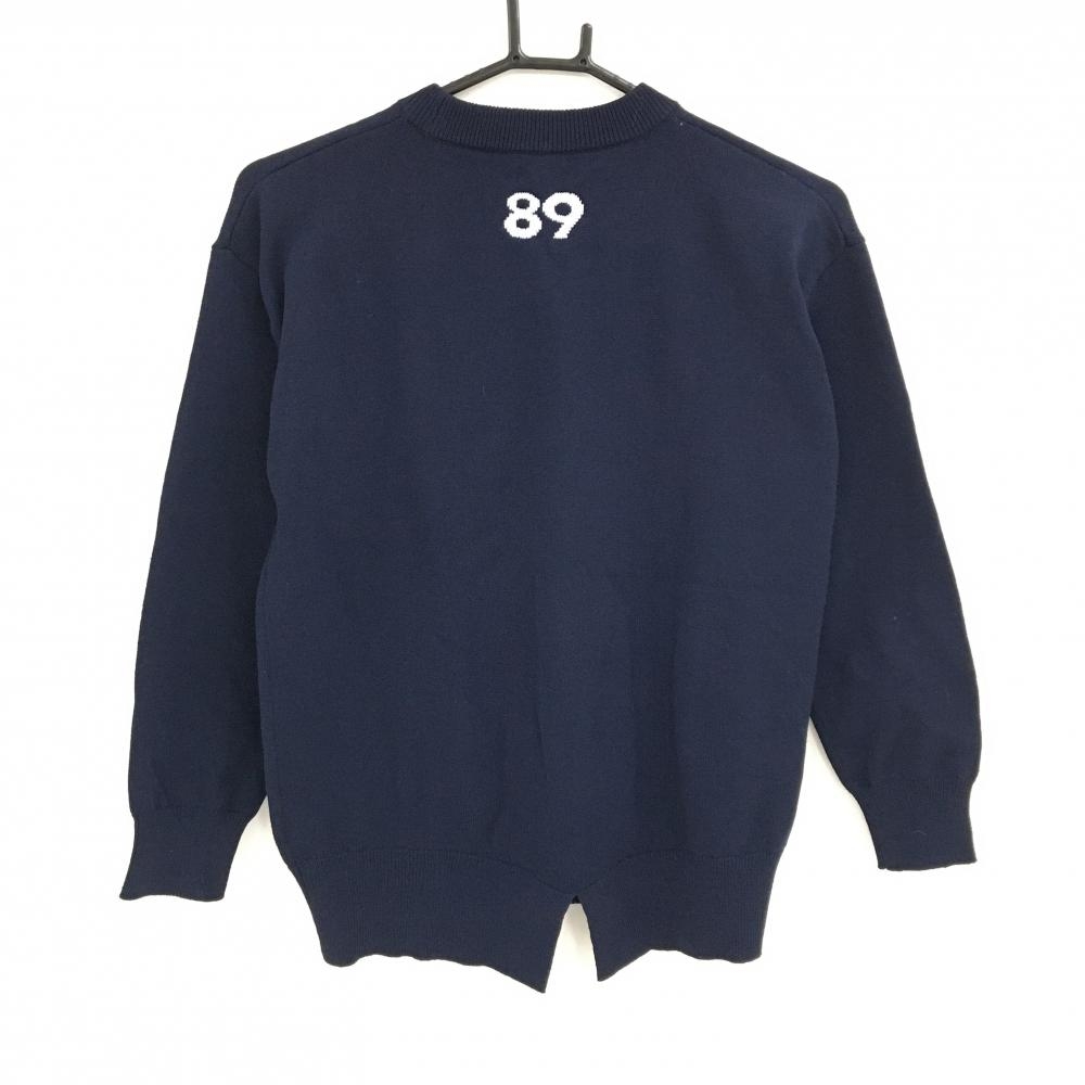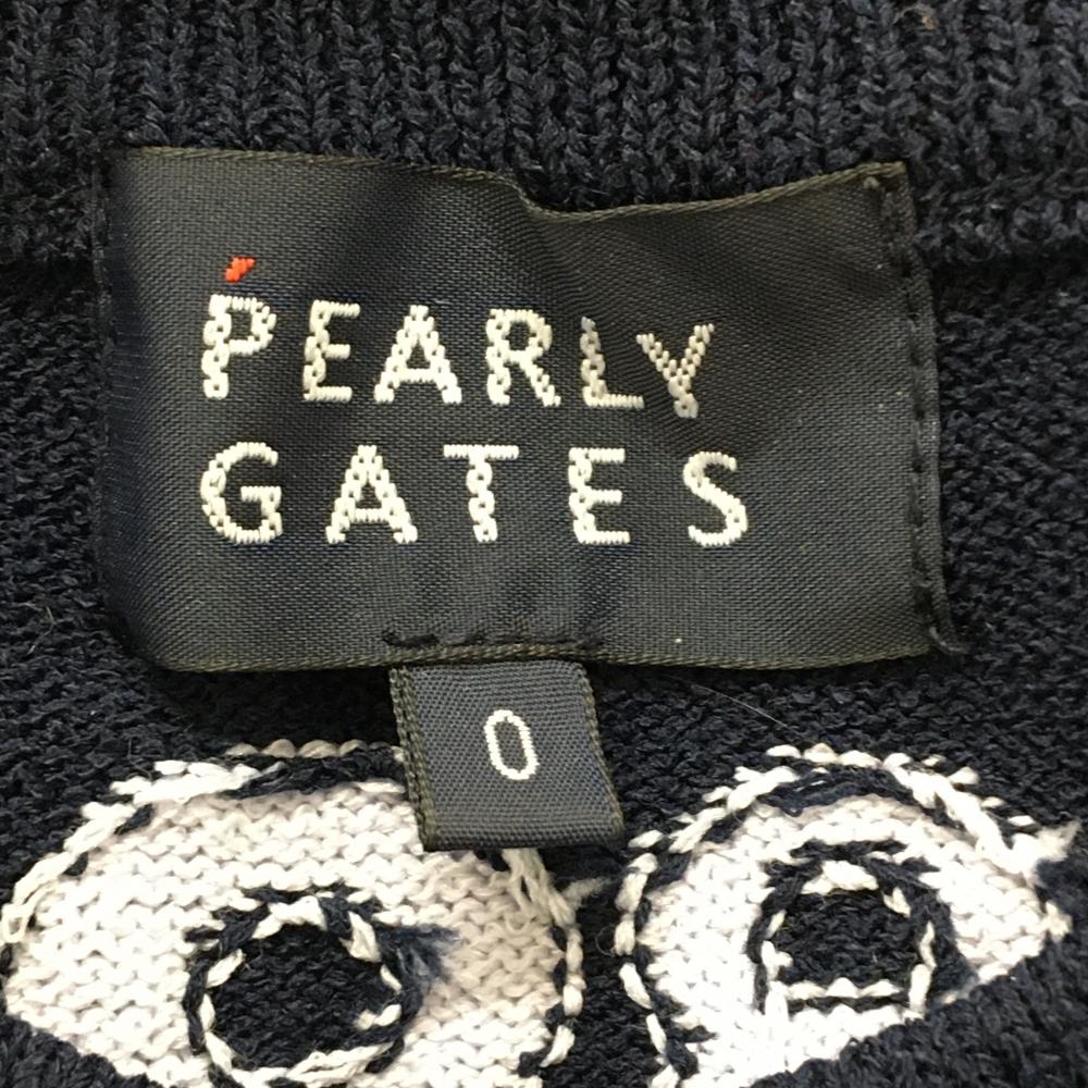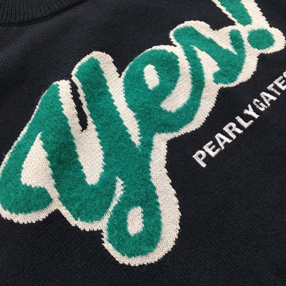 【美品】パーリーゲイツ セーター ネイビー×ブルーグリーン ニット ウール混 レディース 0(S) ゴルフウェア PEARLY GATES