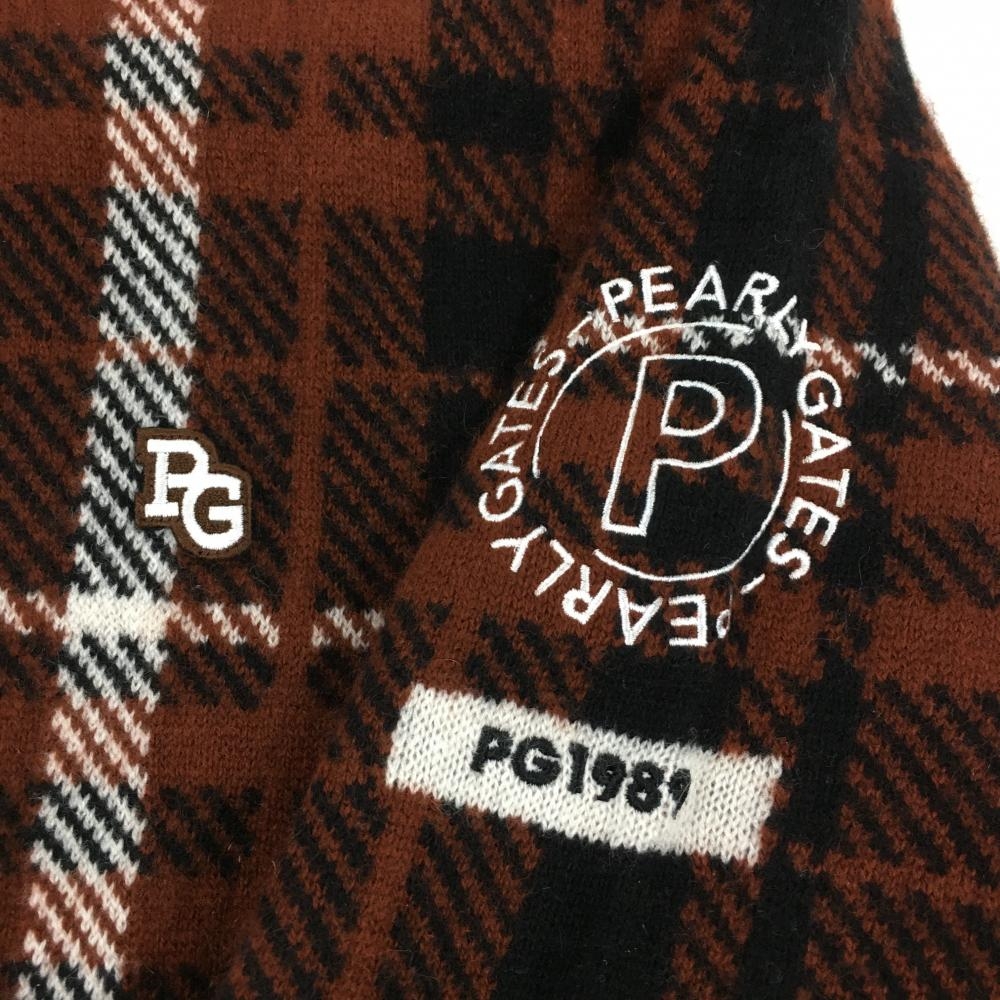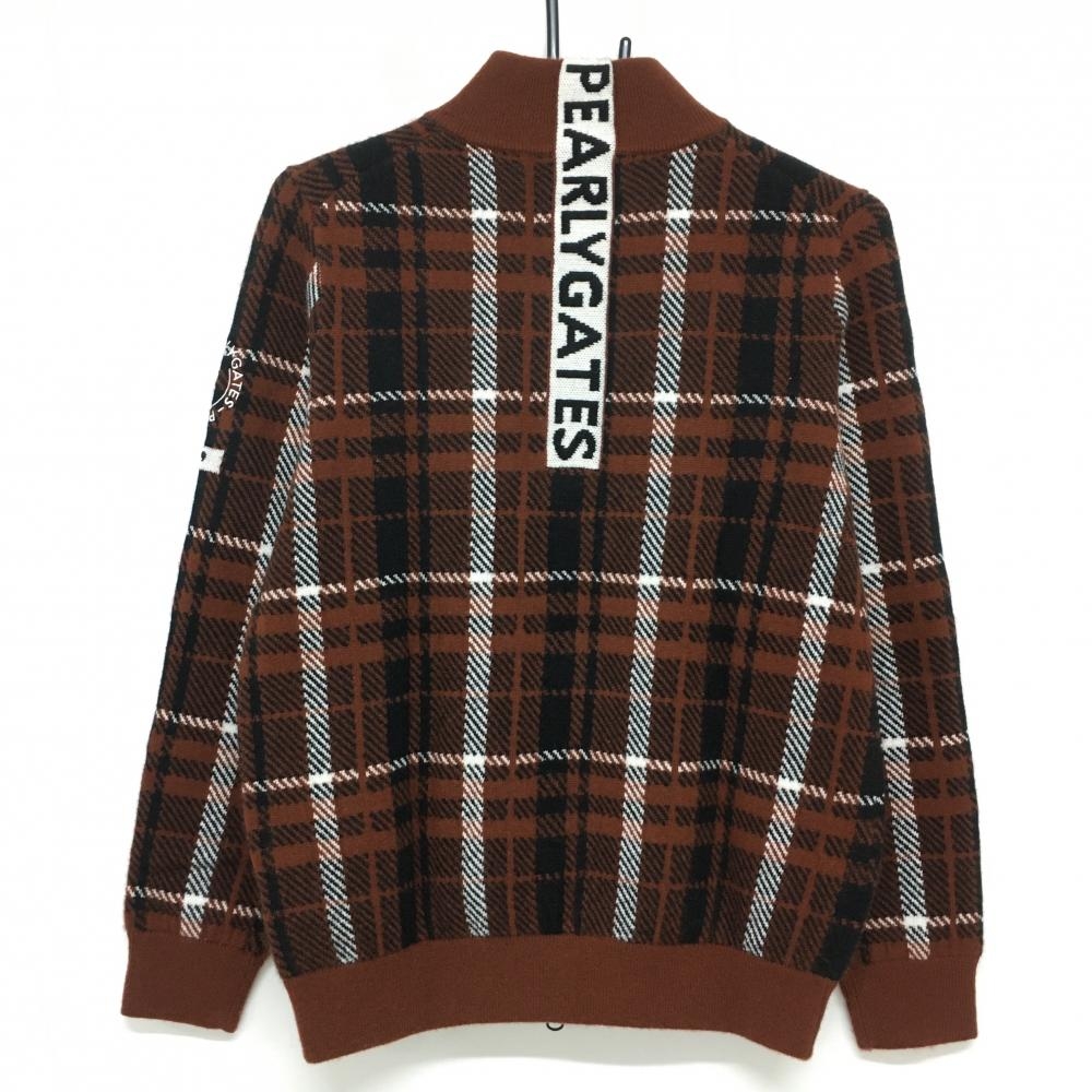 【超美品】パーリーゲイツ ニットジャケット ブラウン×黒 チェック レディース 1(M) ゴルフウェア 2023年モデル PEARLY GATES