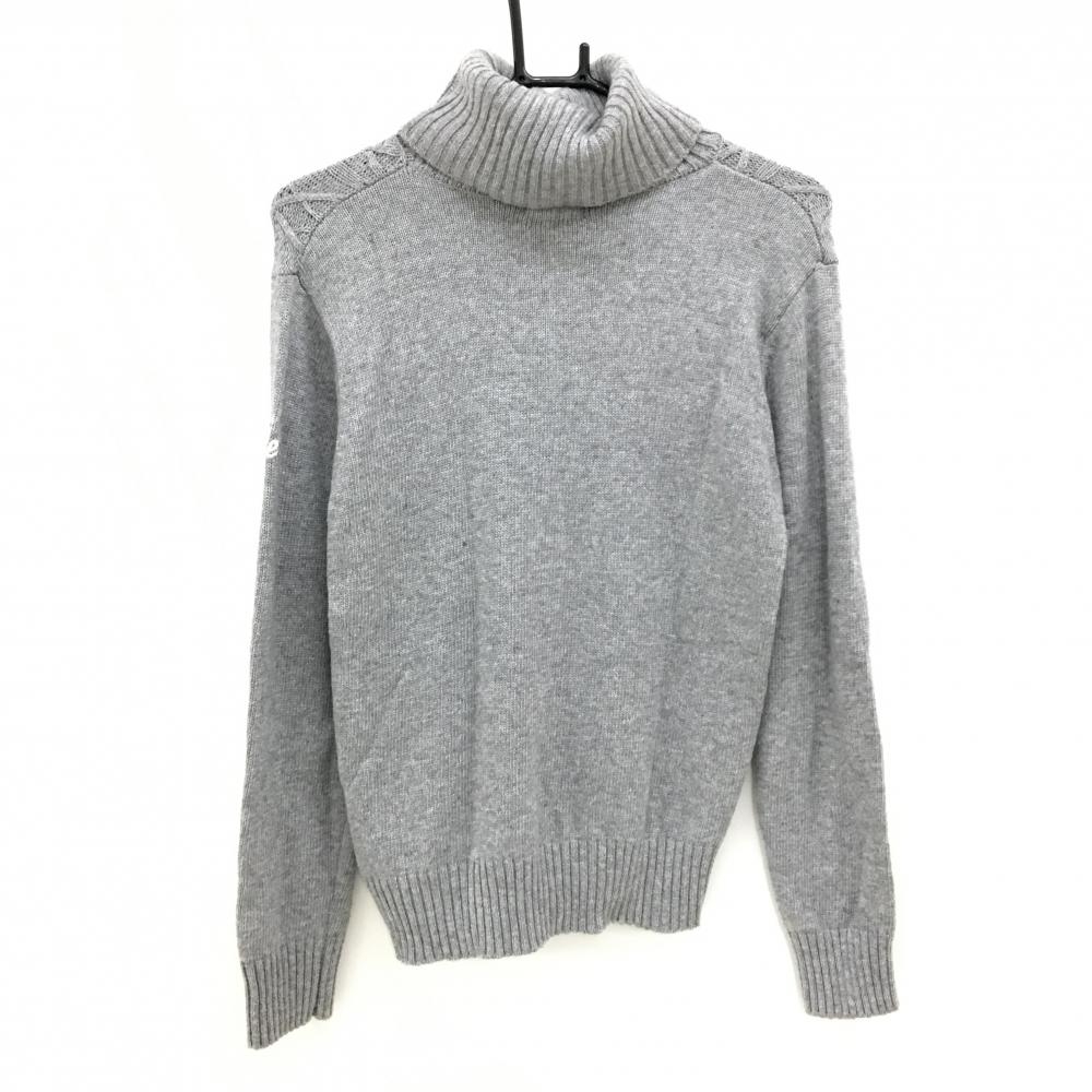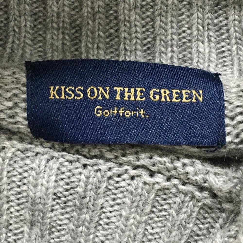 【美品】キスオンザグリーン タートルネックセーター グレー 袖ロゴ刺しゅう アンゴラ混 レディース F ゴルフウェア kiss on the green