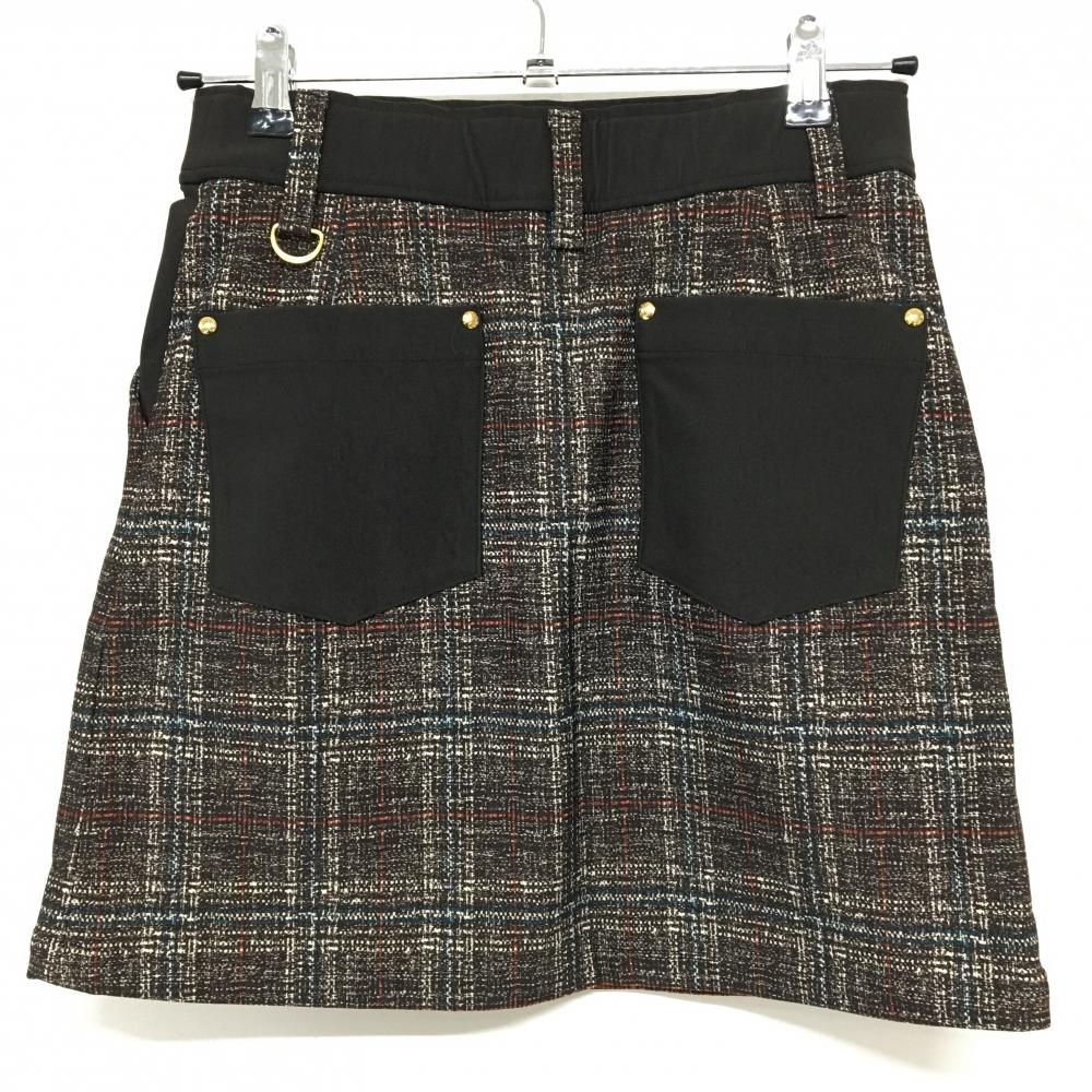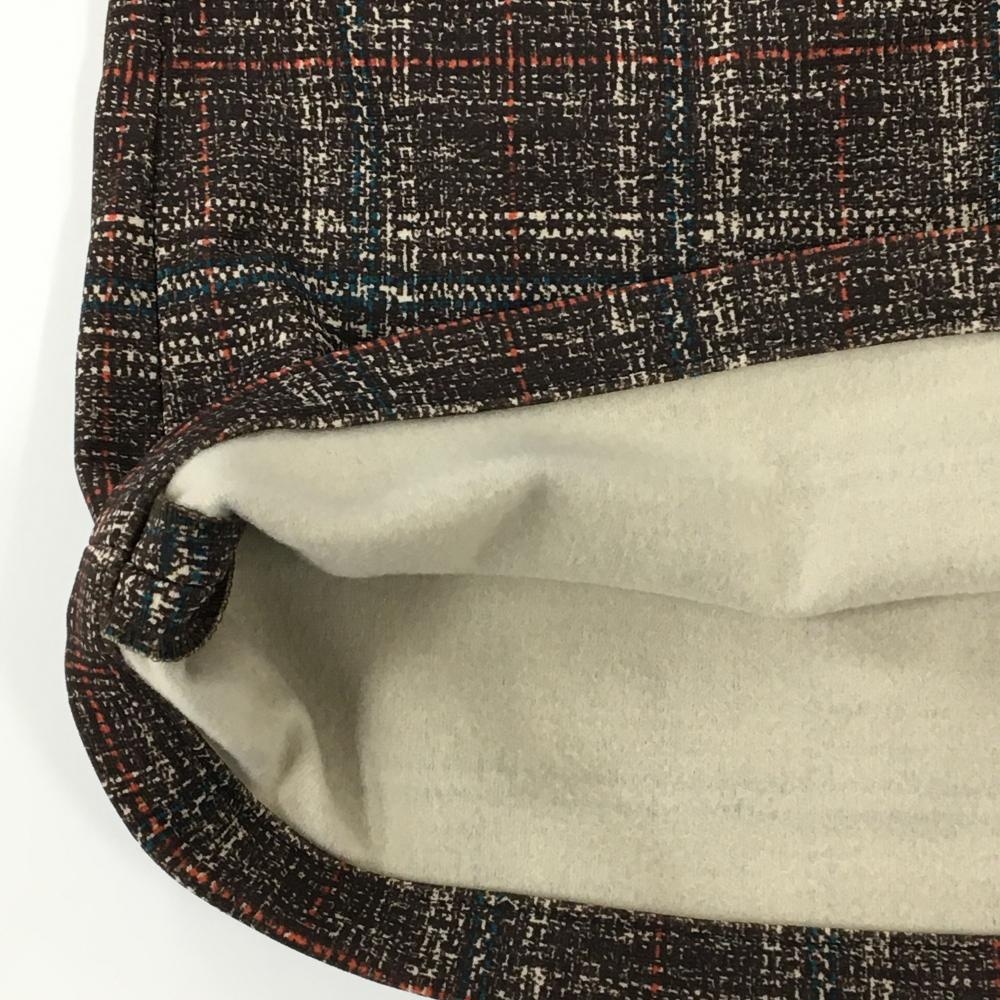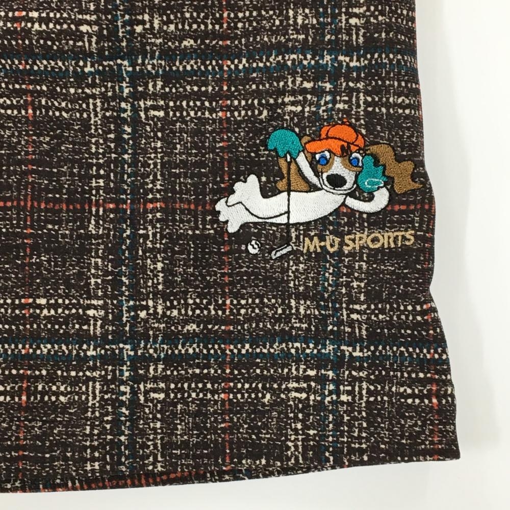 【超美品】MUスポーツ ストレッチスカート ダークブラウン×白 チェック風 裏起毛 レディース 40(M) ゴルフウェア M・U SPORTS