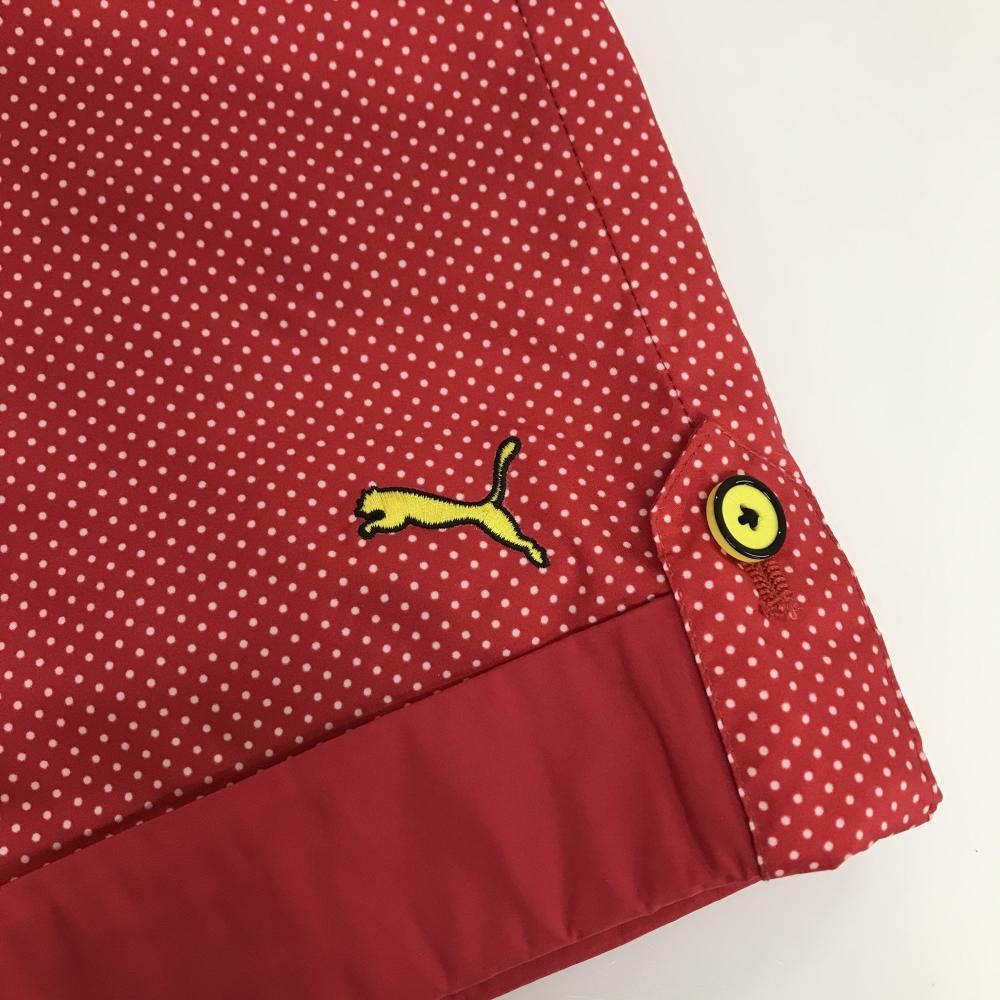 【超美品】プーマ 中綿ハーフパンツ レッド×白 ドット ロゴ刺しゅう メンズ L ゴルフウェア PUMA