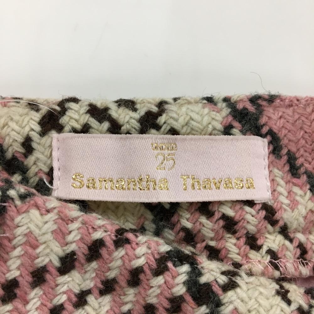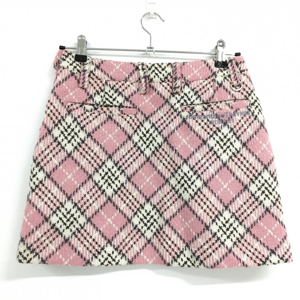 【美品】サマンサタバサUNDER25 スカート ピンク×白 チェック インナーパンツ付き レディース M ゴルフウェア Samantha Thavasa