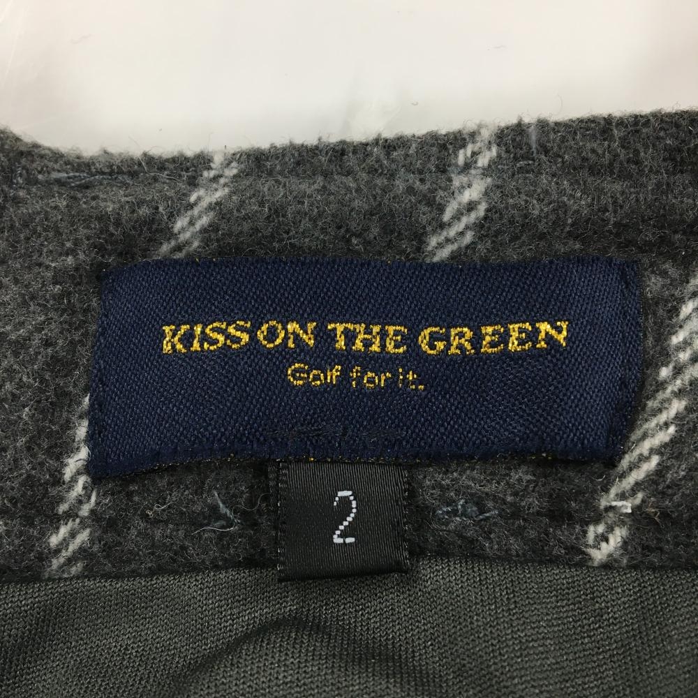 【美品】キスオンザグリーン キュロットスカート グレー×白 ストライプ 起毛素材 秋冬 レディース 2(M) ゴルフウェア kiss on the green
