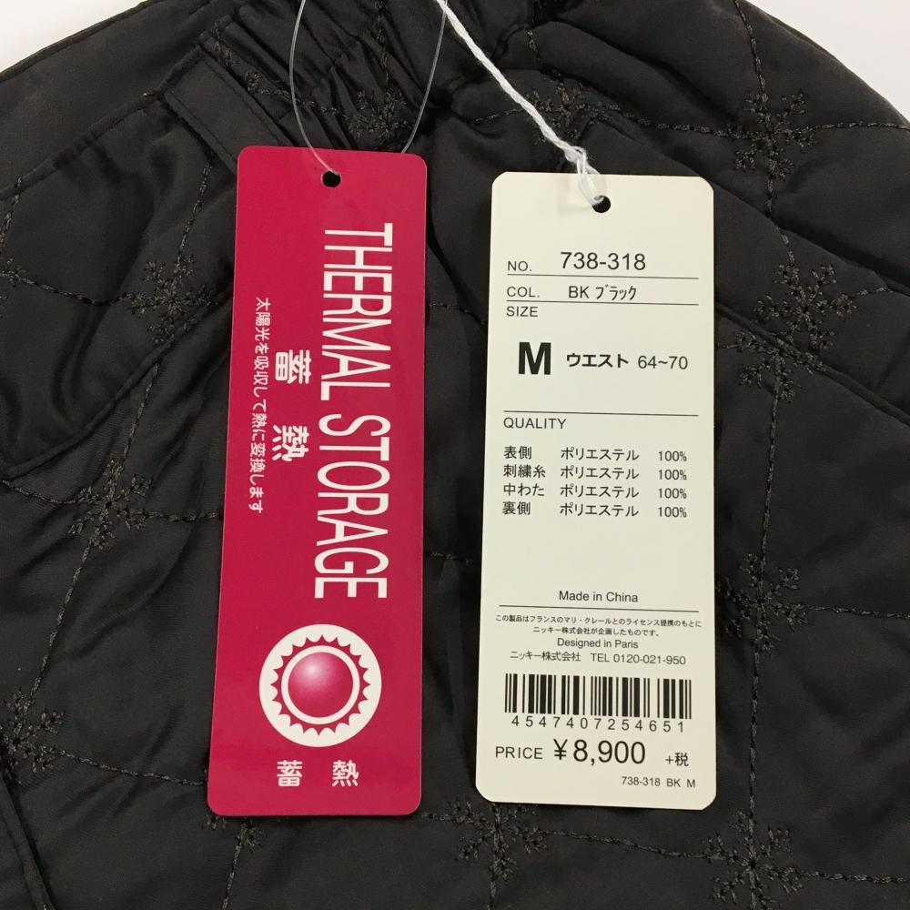 マリクレール 中綿パンツ 黒 キルティング ボールポーチ付 ウエスト 紙タグ付 レディース M ゴルフウェア marie claire
