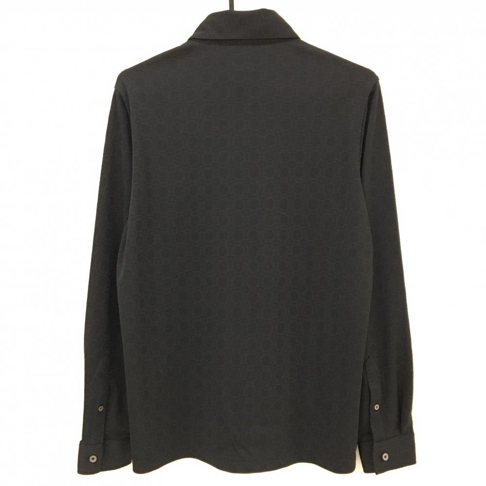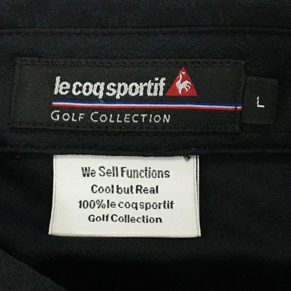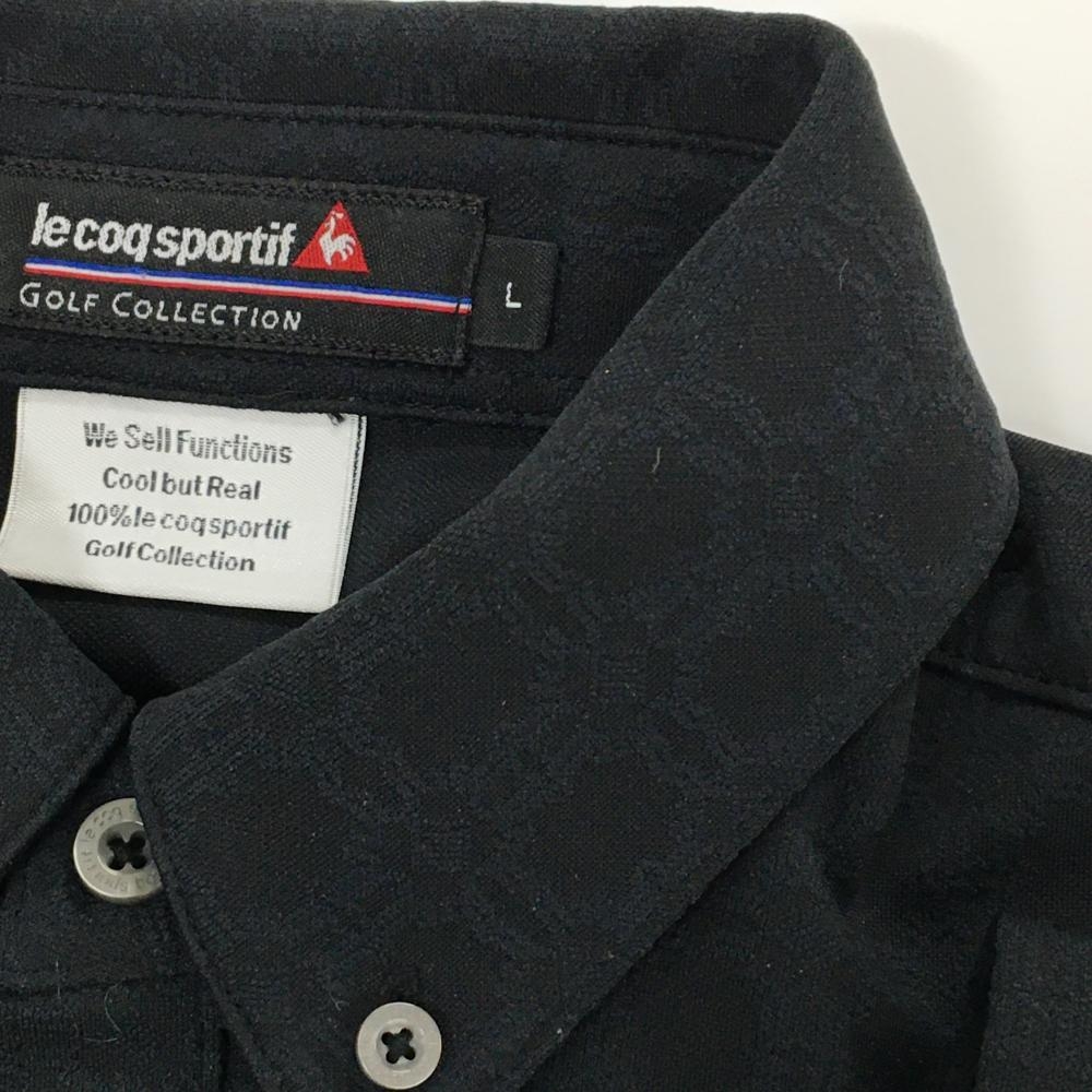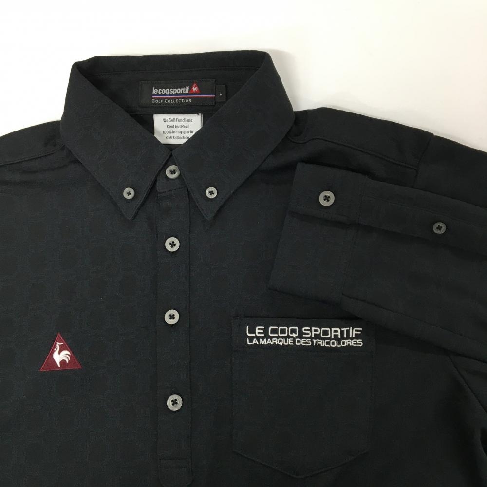 【美品】ルコックゴルフ 長袖ポロシャツ 黒 総柄地模様 ボタンダウン ロゴ刺しゅう メンズ L ゴルフウェア le coq sportif