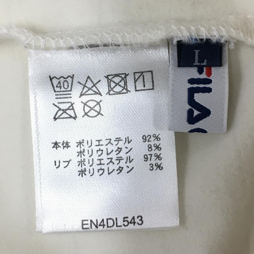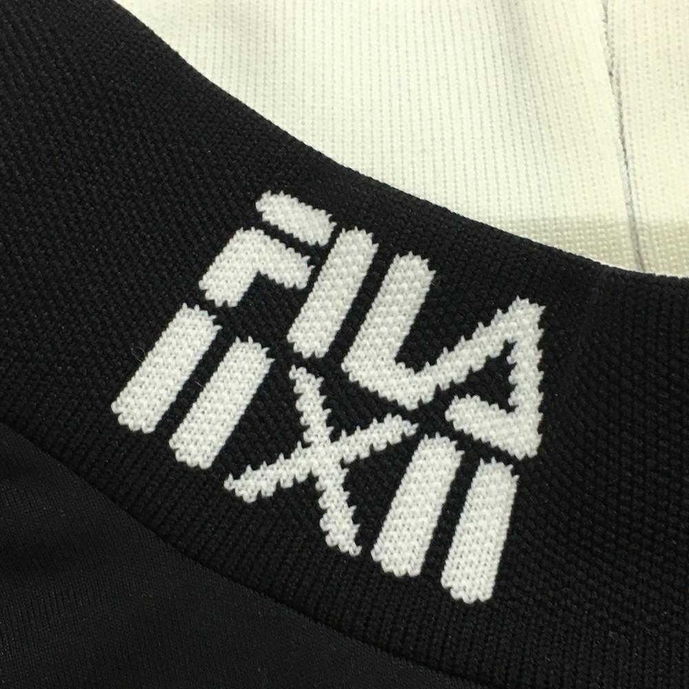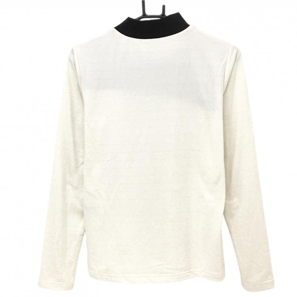 【美品】フィラゴルフ 長袖ハイネックシャツ アイボリー×黒 ネックロゴ 裏微起毛 レディース L ゴルフウェア FILA GOLF