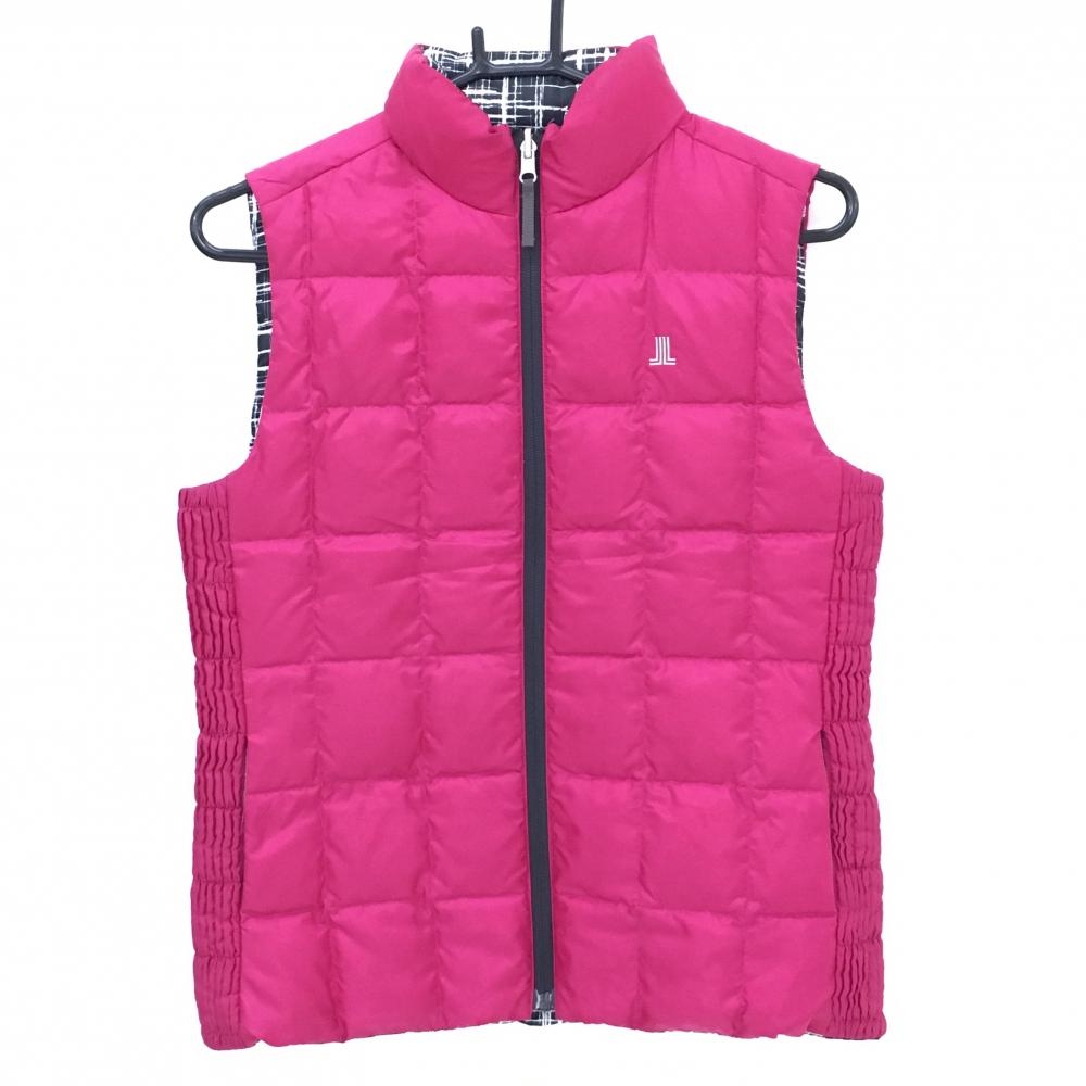 ランバンスポール リバーシブルダウンベスト 黒×白 総柄 サイド切替 裏ピンク無地 レディース 38(M) ゴルフウェア LANVIN SPORT