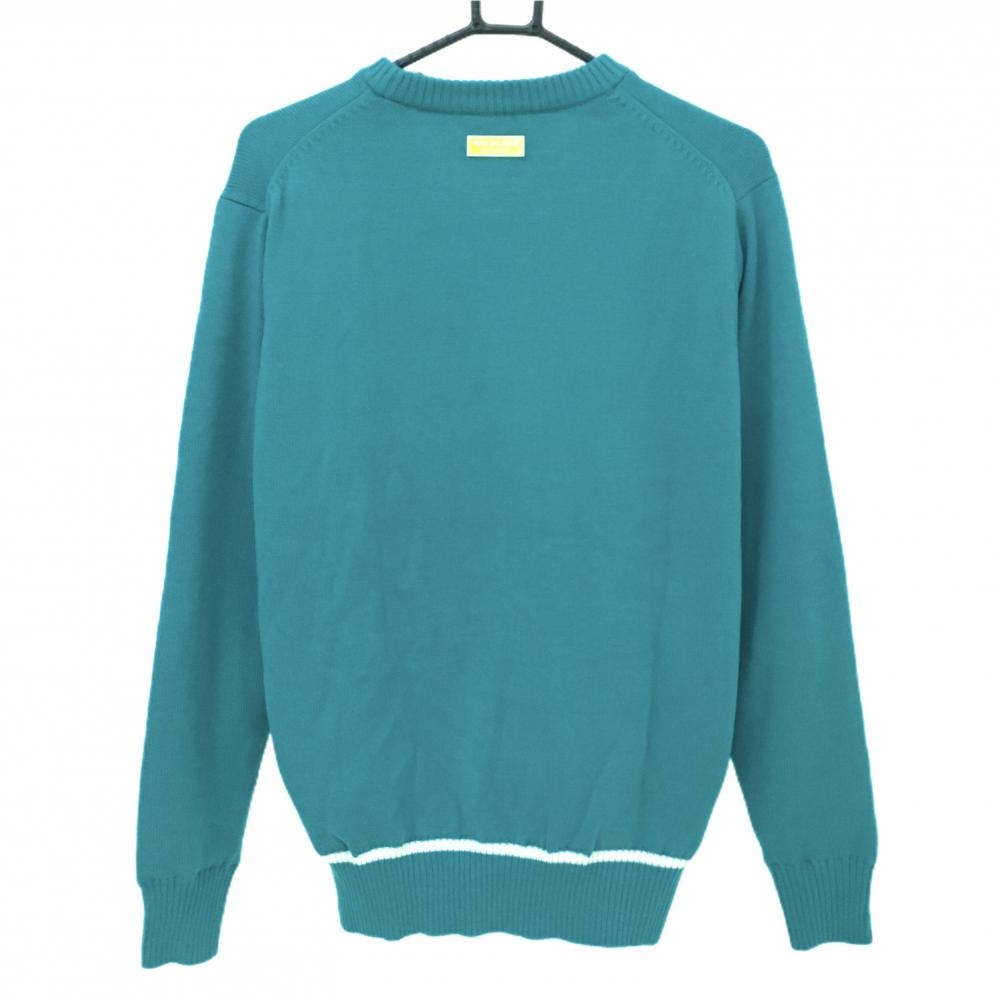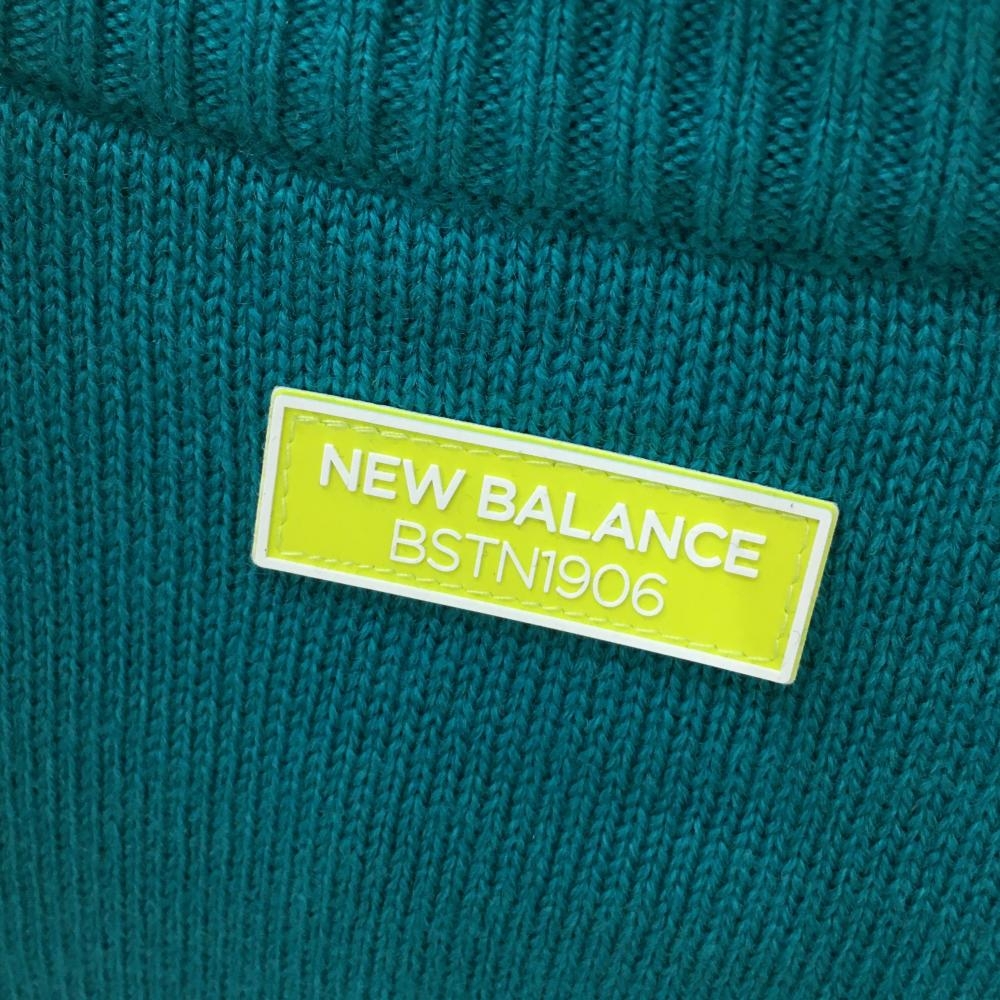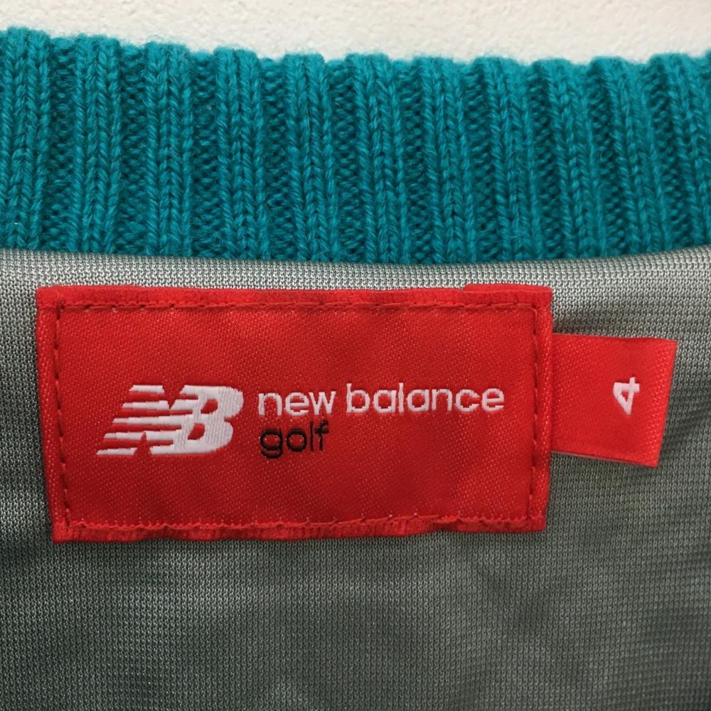 【超美品】ニューバランスゴルフ 裏地付セーター グリーン×白 フロントロゴ ウール混 ニット メンズ 4(M) ゴルフウェア New Balance