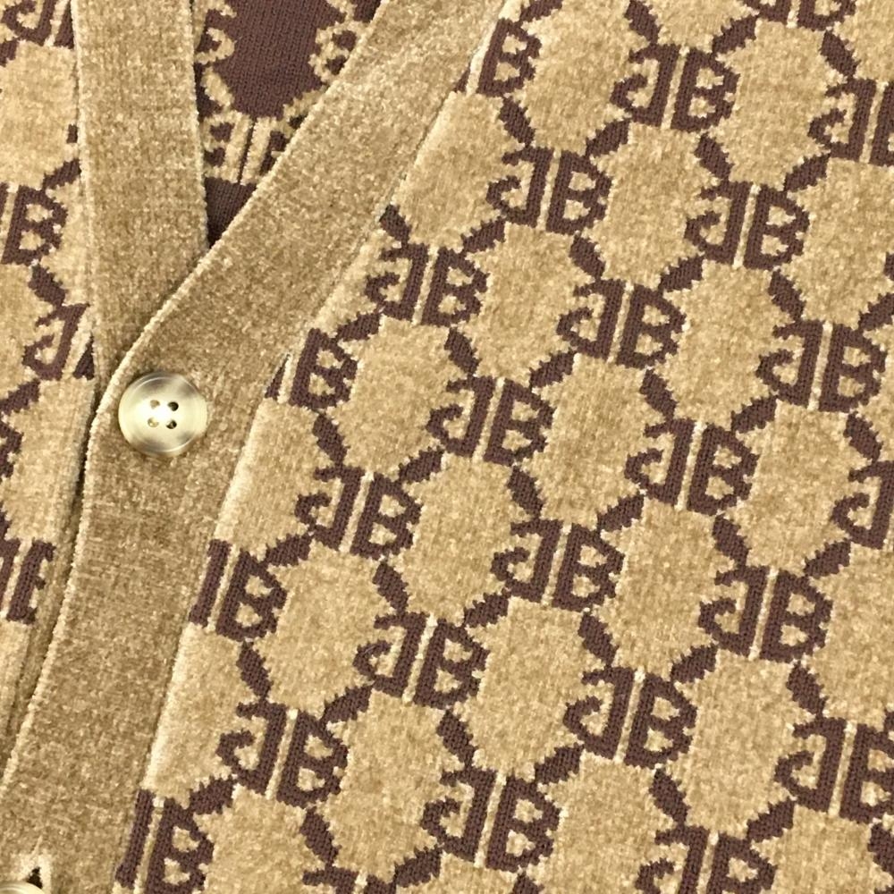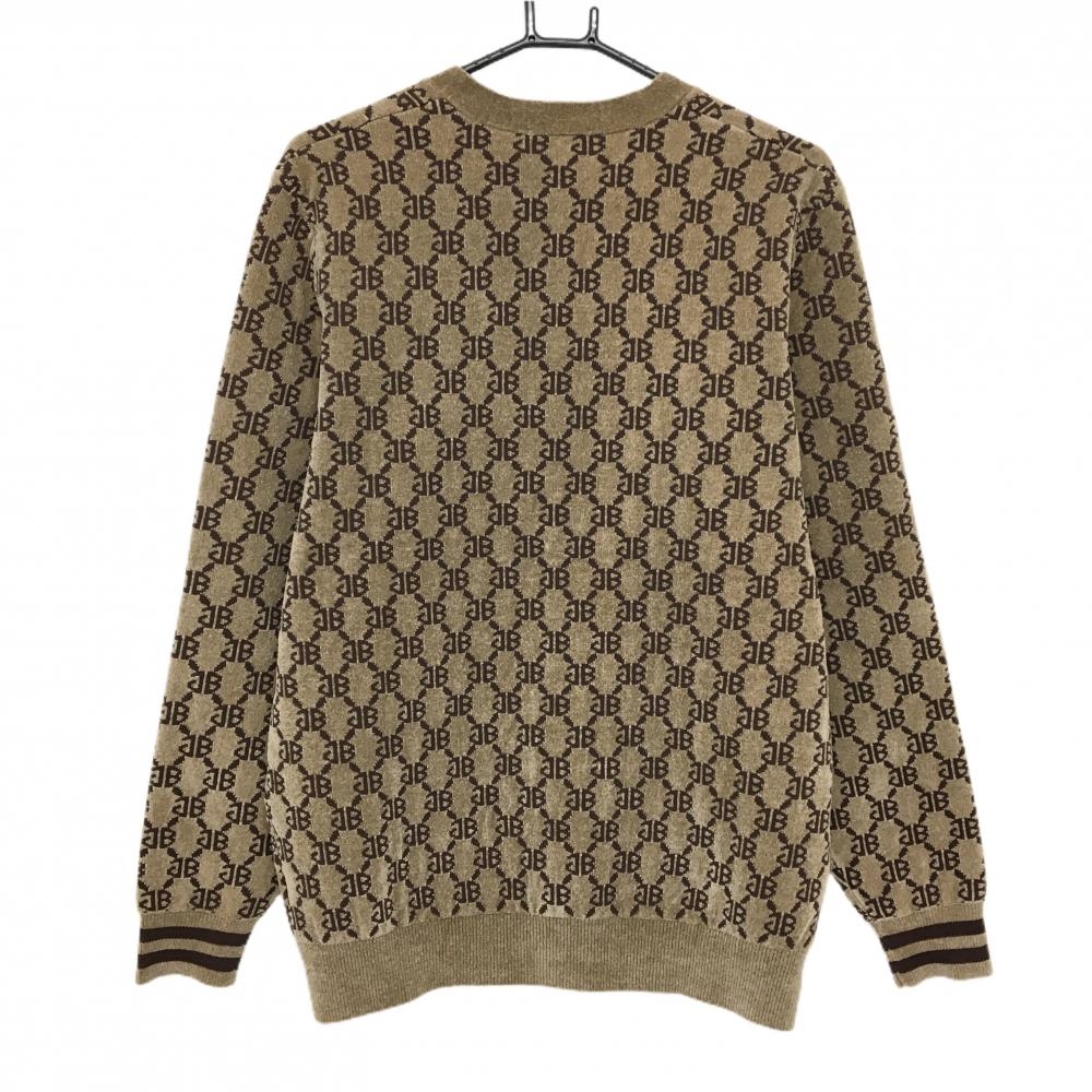 【超美品】ジャックバニー ニットカーディガン ブラウン ロゴ総柄 メンズ 5(L) ゴルフウェア Jack Bunny
