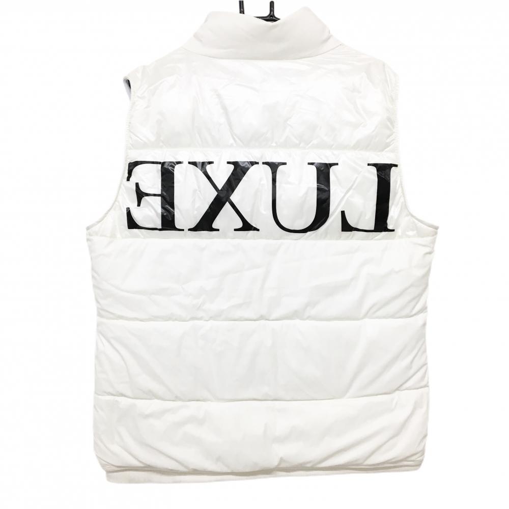 【美品】リュクスエイケイエムプラス 中綿ベスト 白 後ビックプリント メンズ XXL ゴルフウェア 大きいサイズ LUXEAKMPLUS