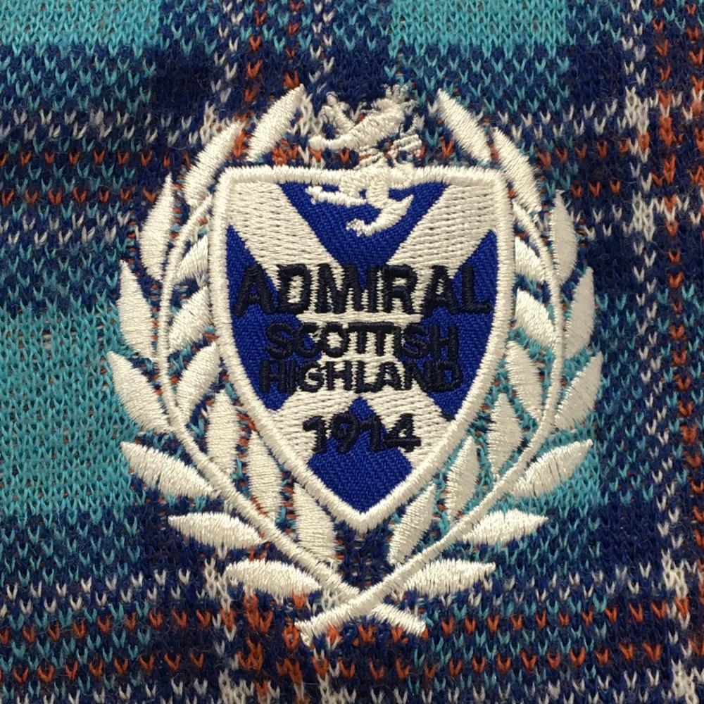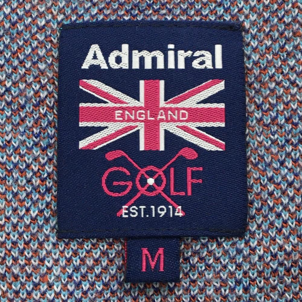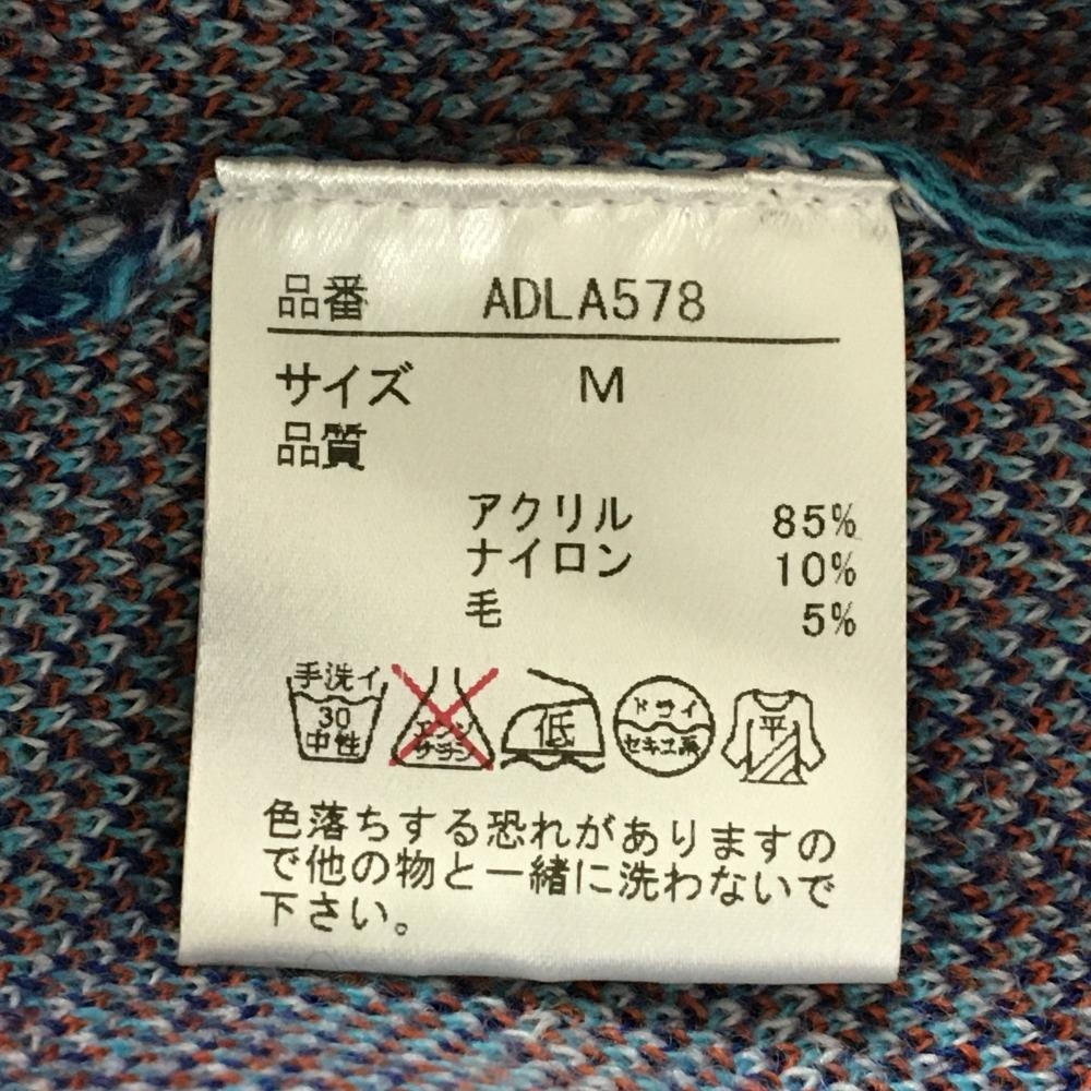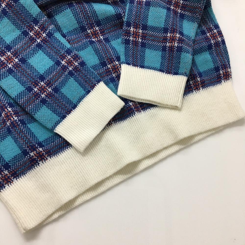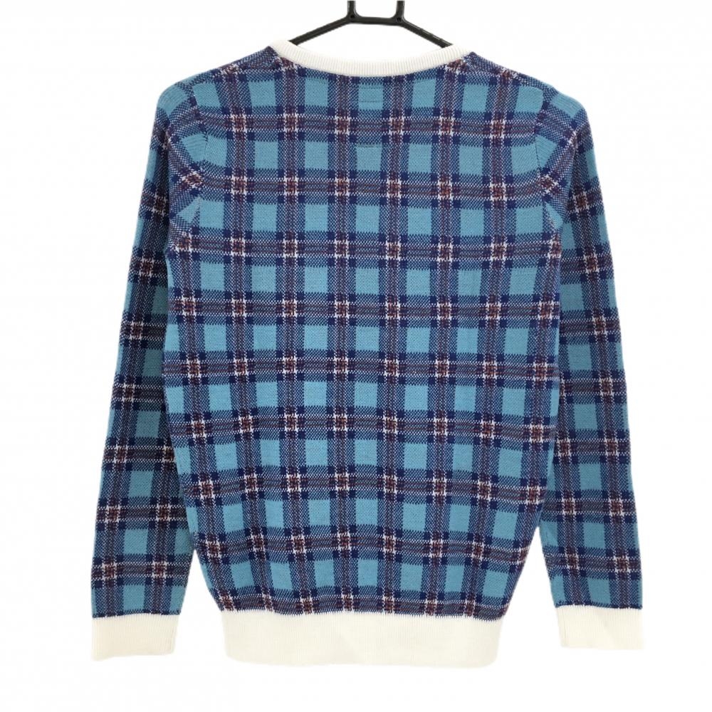 【美品】アドミラル セーター ライトブルー×白 チェック Vネック ロゴ刺しゅう ニット レディース M ゴルフウェア Admiral