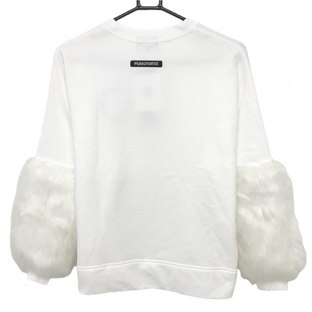 【新品】パーリーゲイツ トレーナー 白 袖ファー 日本製 レディース 0(S) ゴルフウェア PEARLY GATES